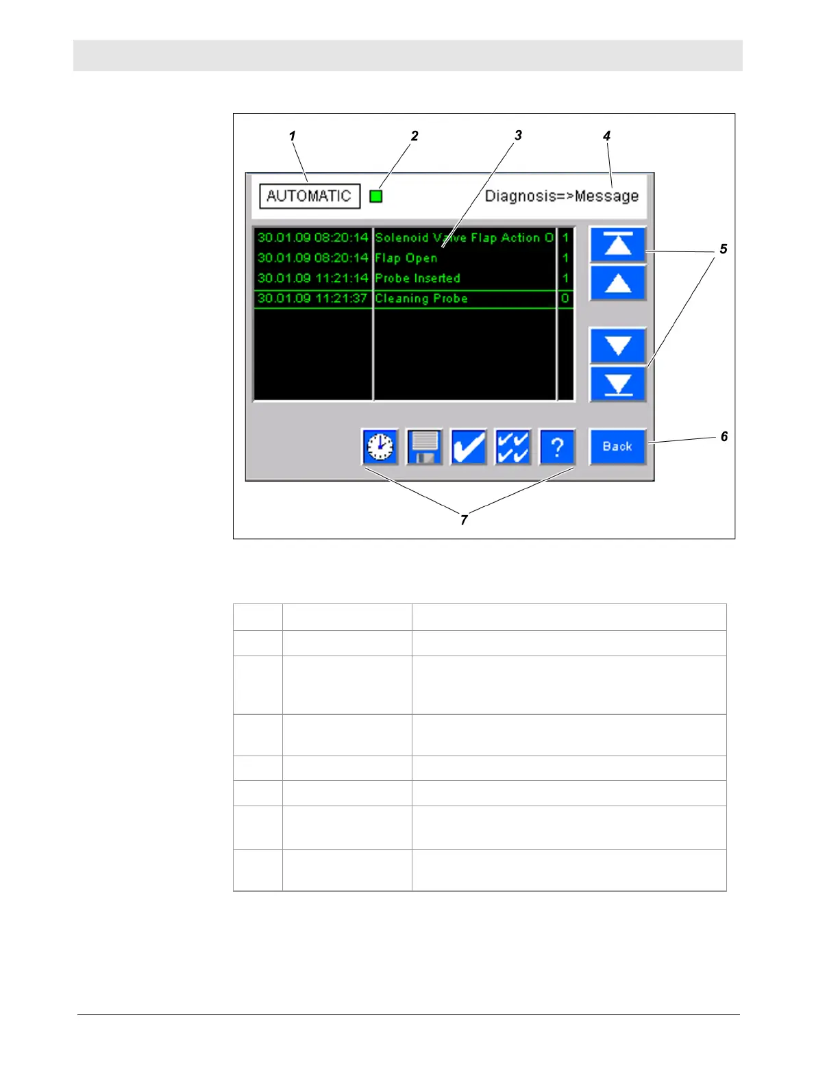 User interface: Message screen
