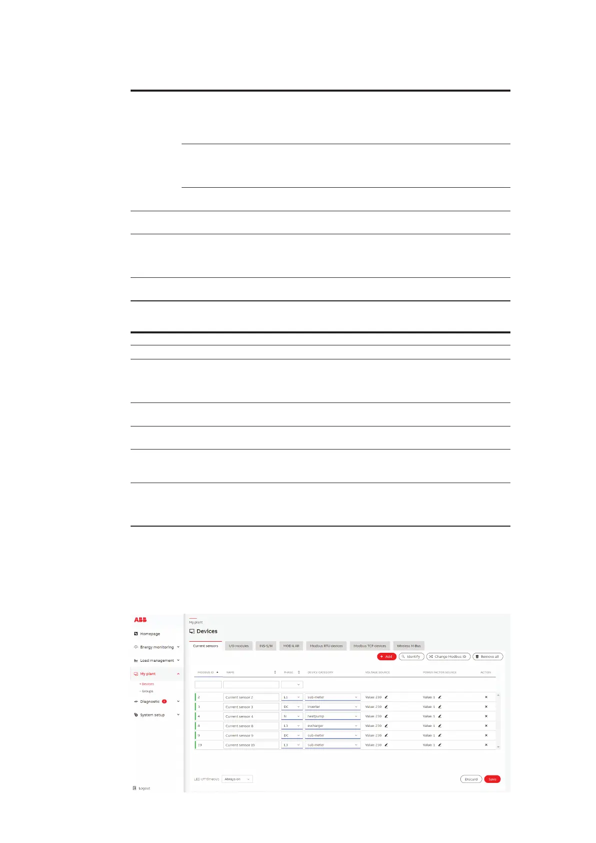 Make sure to select the correct phase on which the current sensor is installed in the phase column. If