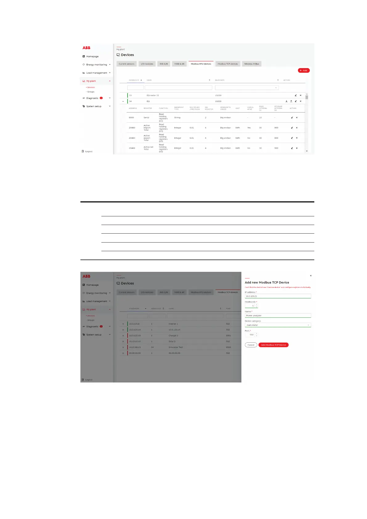 In this section it is possible to add Modbus TCP devices connected to the SCU200.
