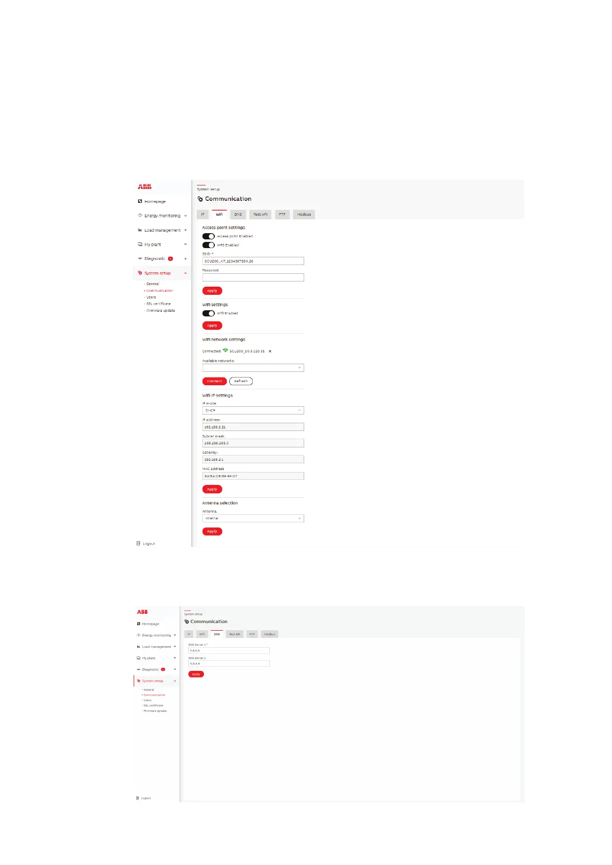 Here you can make changes to the DNS settings, field DNS Server1 is obligatory (default 8.8.8), the