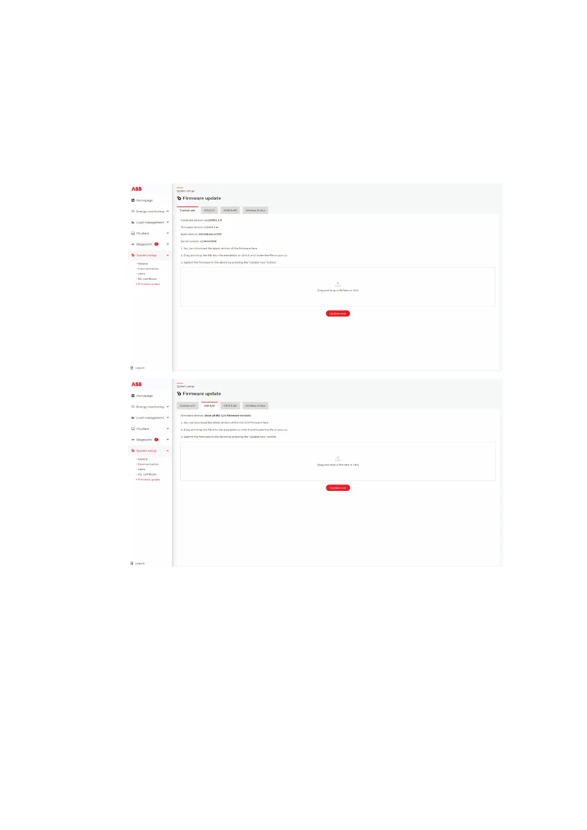 Here you can update the firmware of the Control unit and devices like INS-S/H and Wireless M-Bus