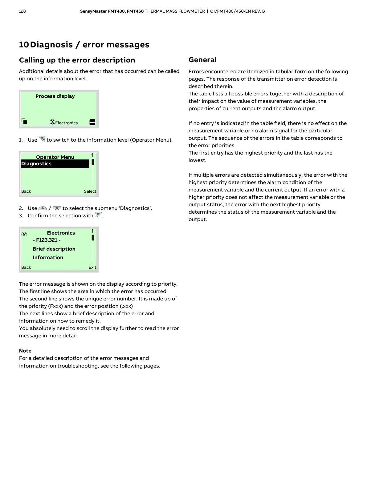 10 Diagnosis / error messages