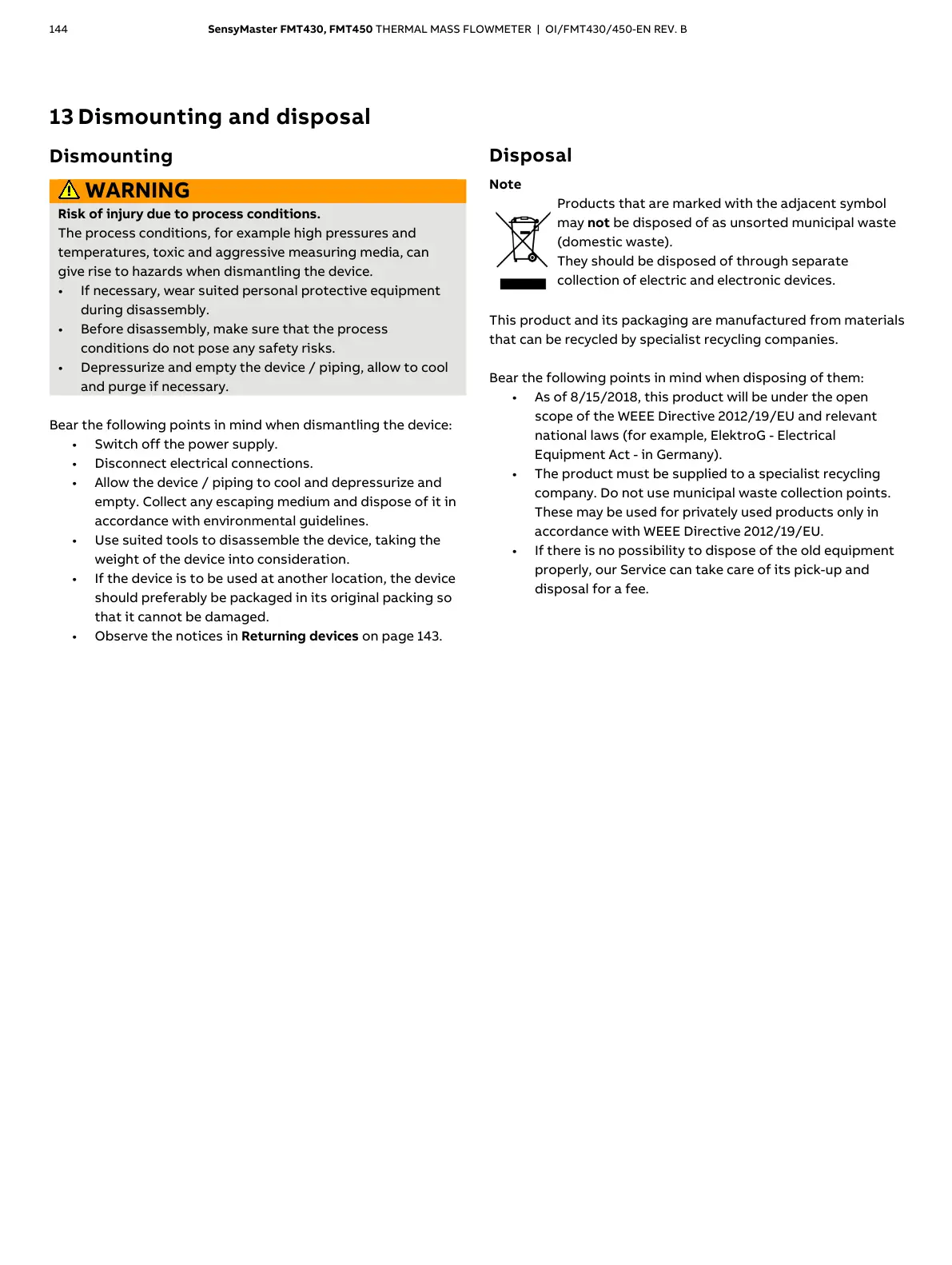 144 SensyMaster FMT430, FMT450 THERMAL MASS FLOWMETER | OI/FMT430/450-EN REV. B