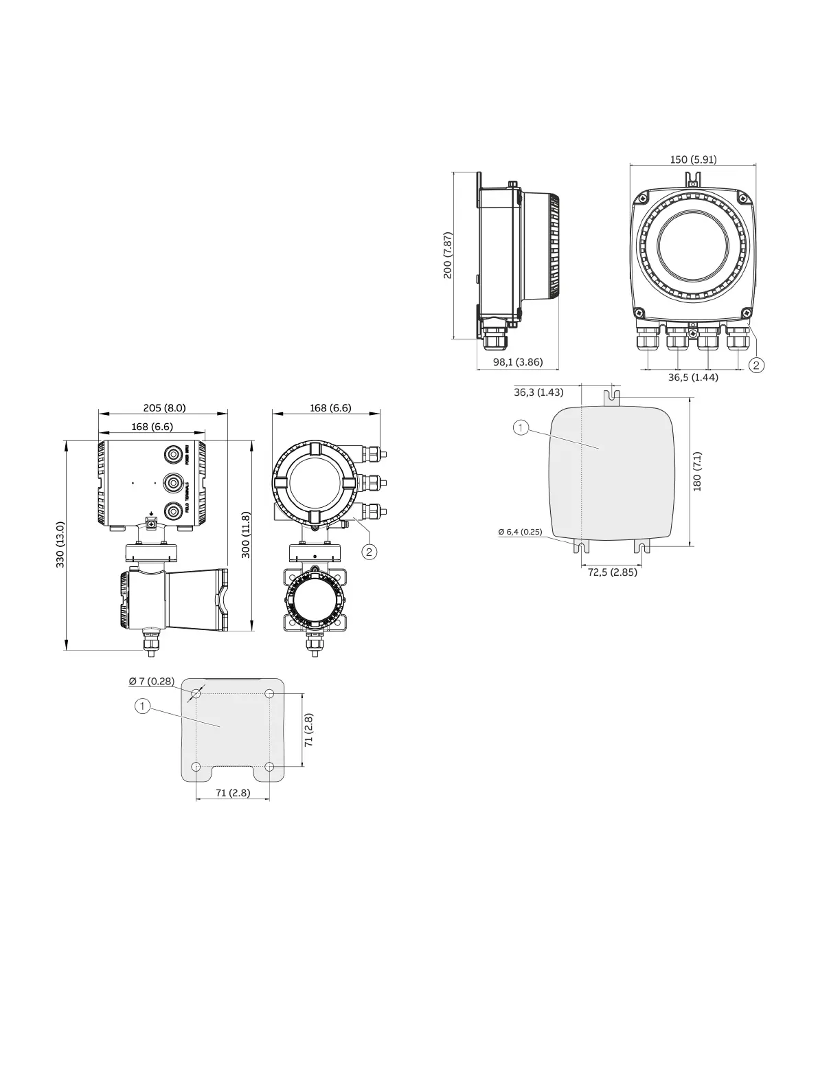Figure 31: Mounting dimensions dual-compartment housing