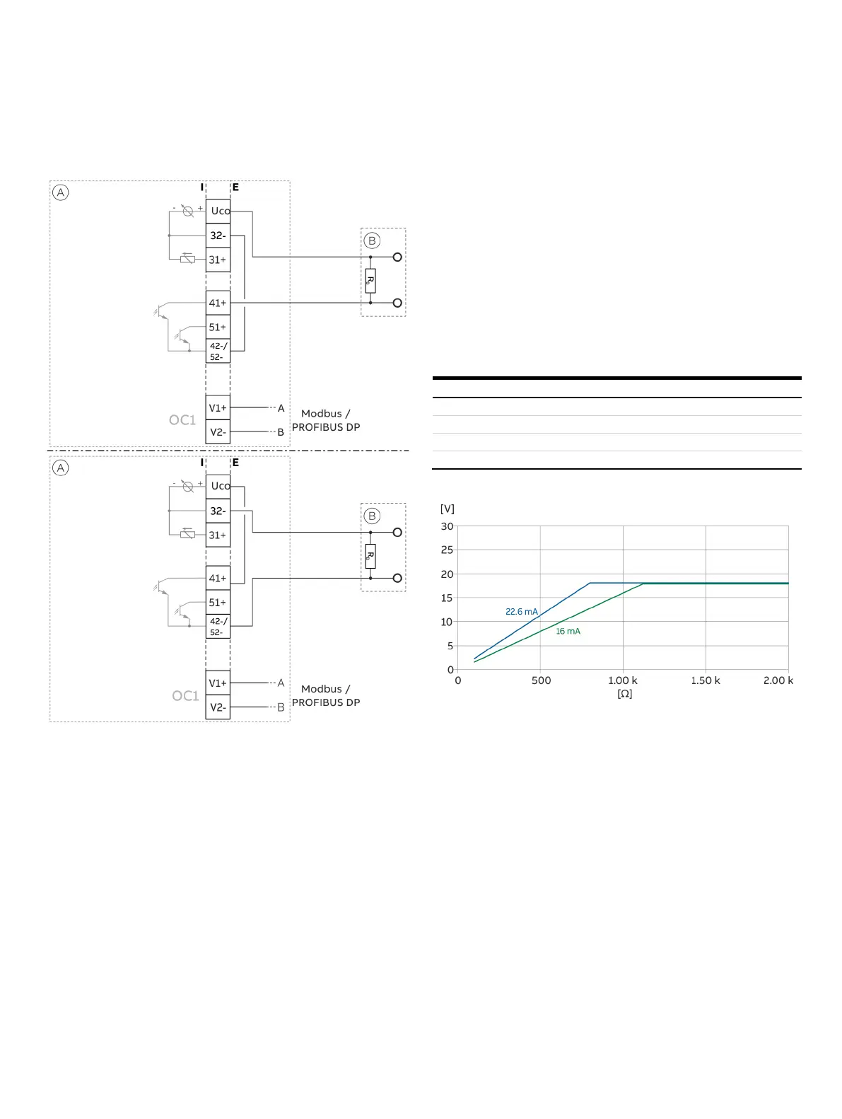 The current output 31/32/Uco is set permanently to 22.6 mA and