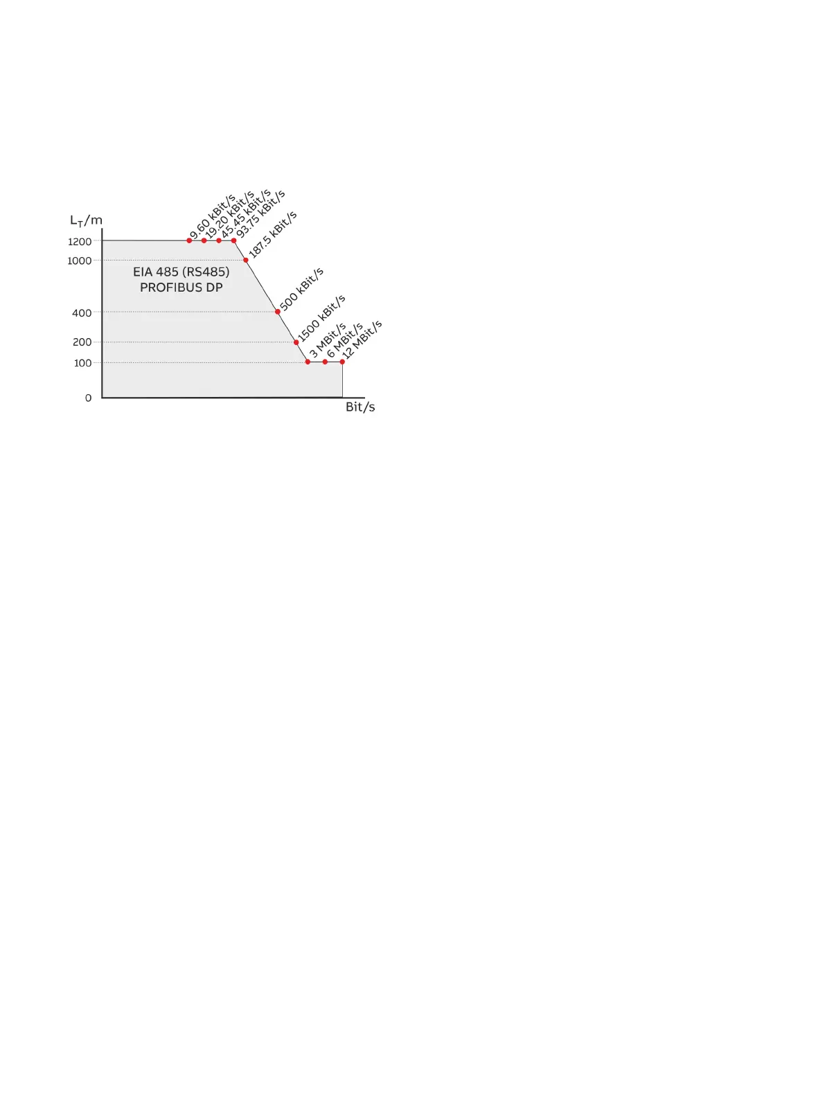• At 1500 kBit/s and ABB DP cable type A: