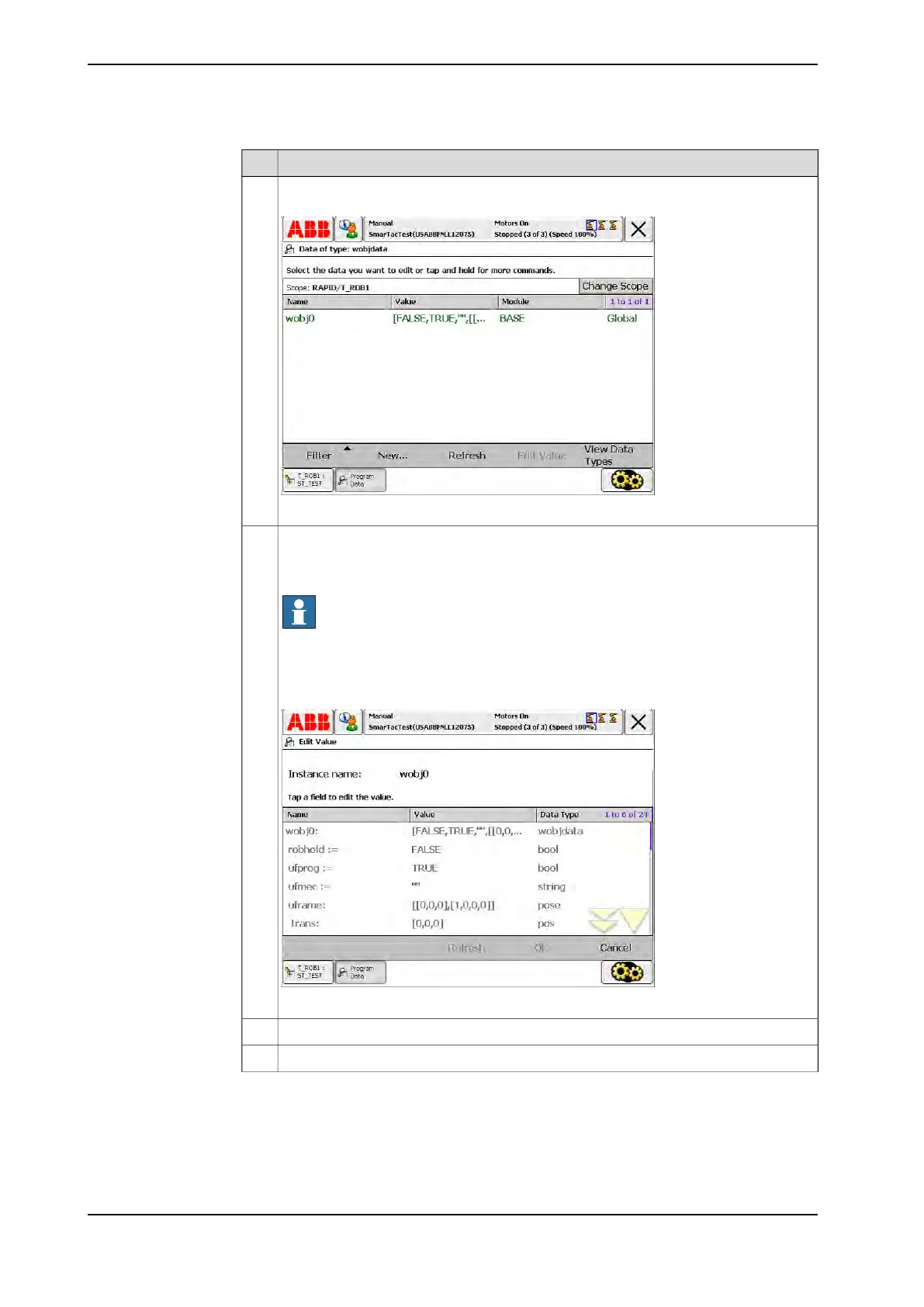 Open the Program Data window and take a look at the values in wobj0. Then tap to