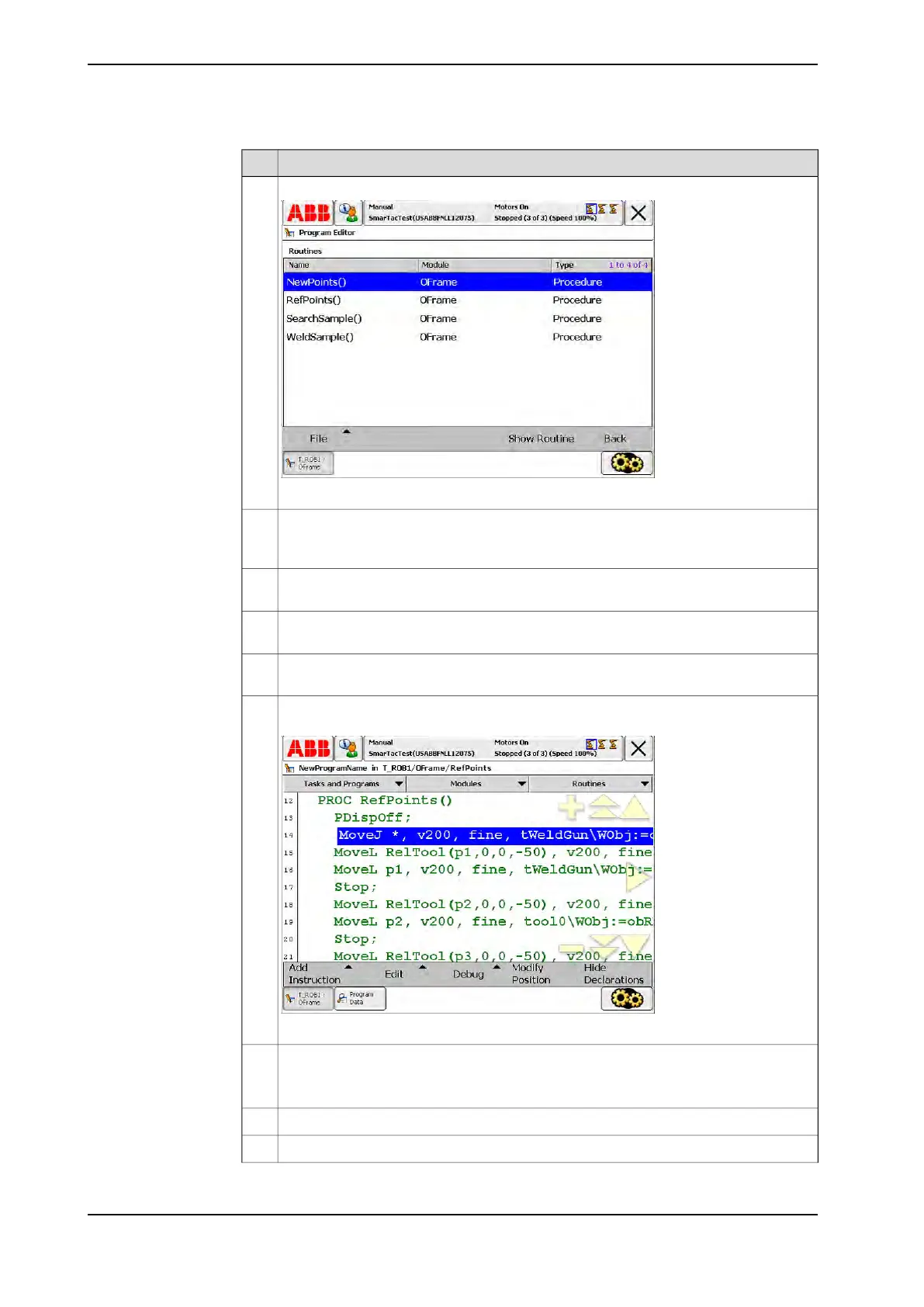 Jog the robot to the p3 mark and modify the MoveL: MoveL p3, v200…10