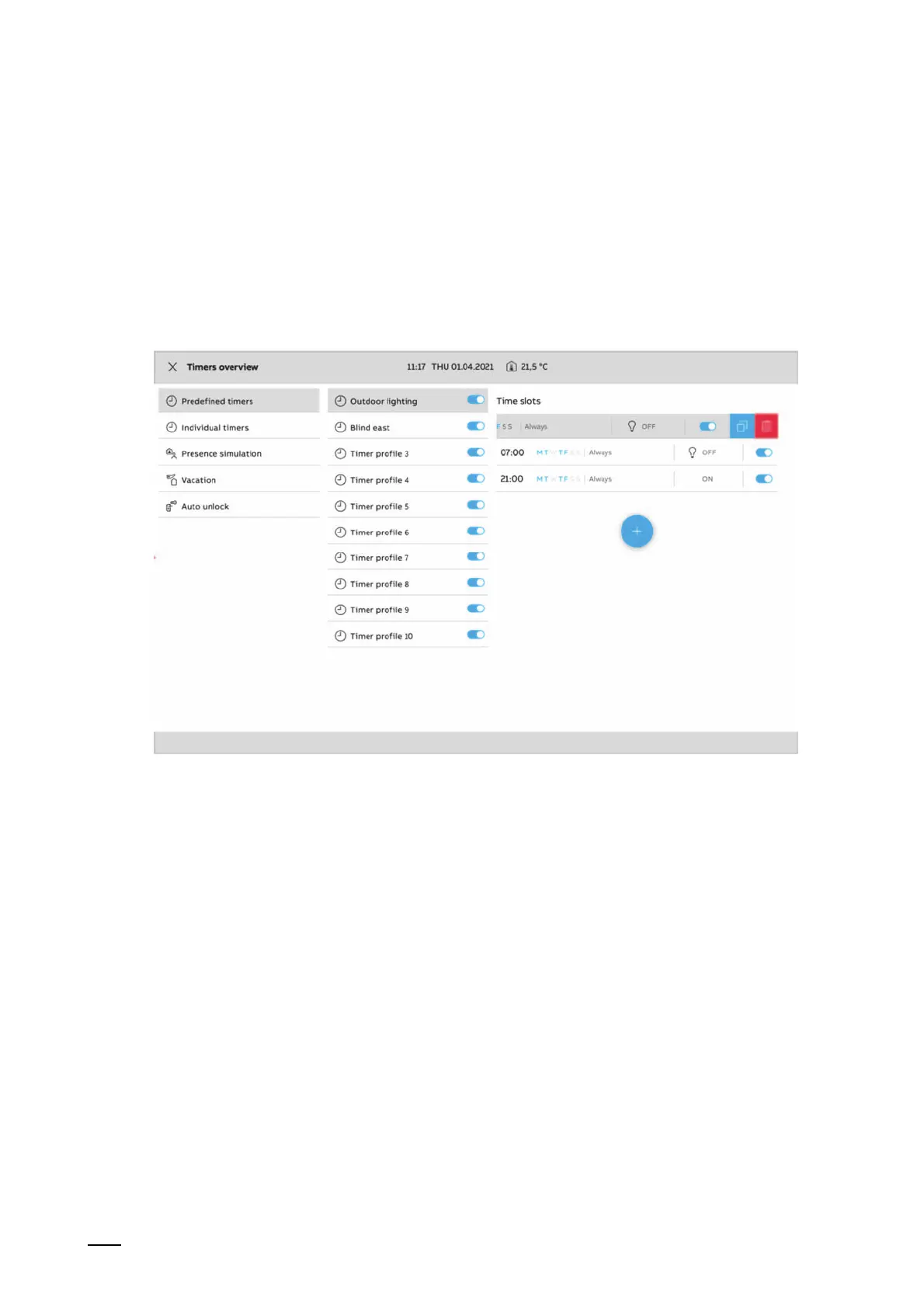This can be activated or deactivated via the blue slider at the right next to each time program.
