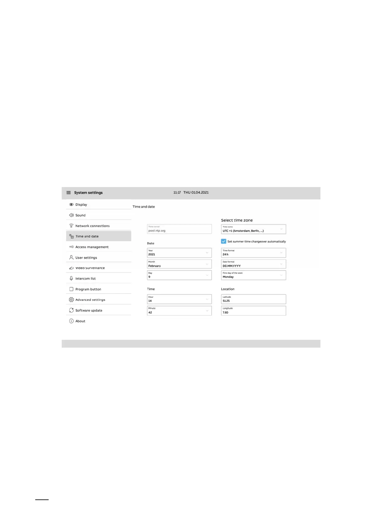 All relevant data can be specified in the time and data settings. Also an automatic time change