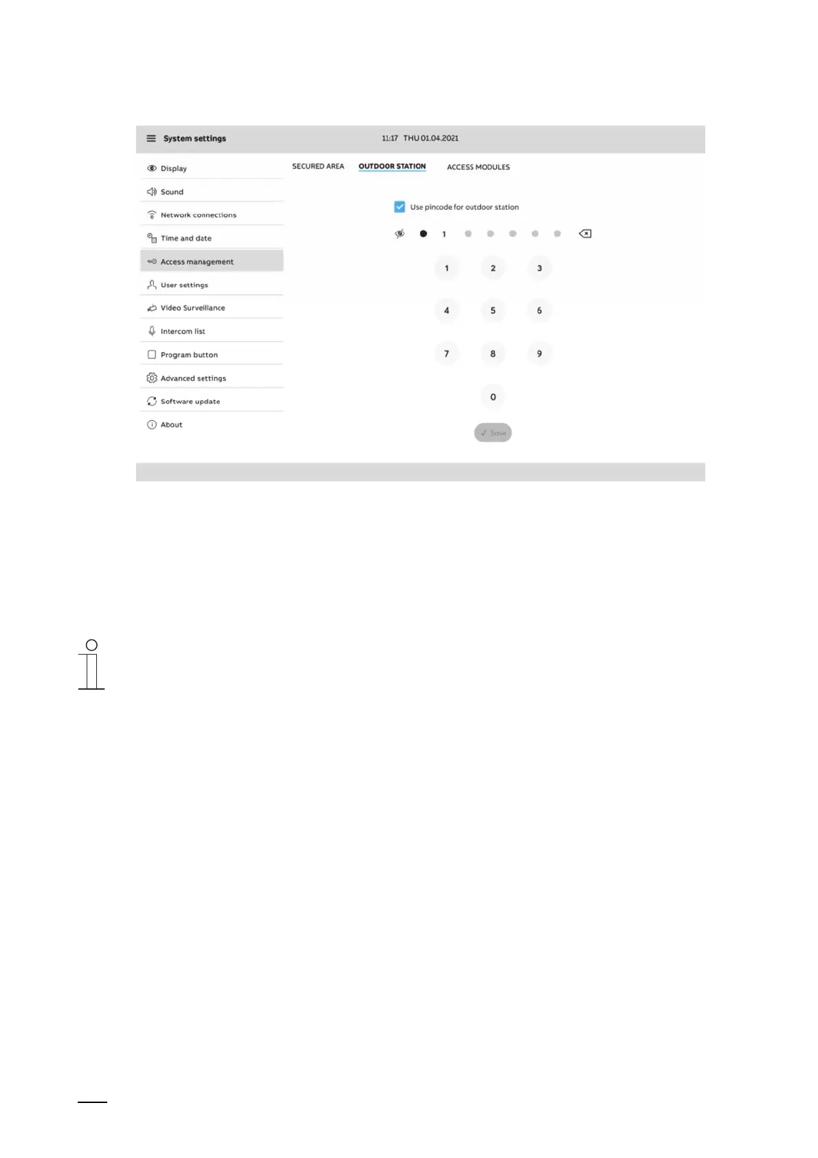 3. Specify the PIN code by tapping on "Save".
