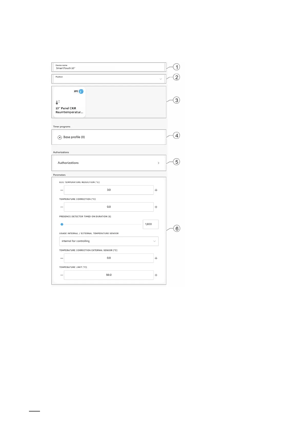 can switch it on and off, set the actual temperature and specify the operating mode.