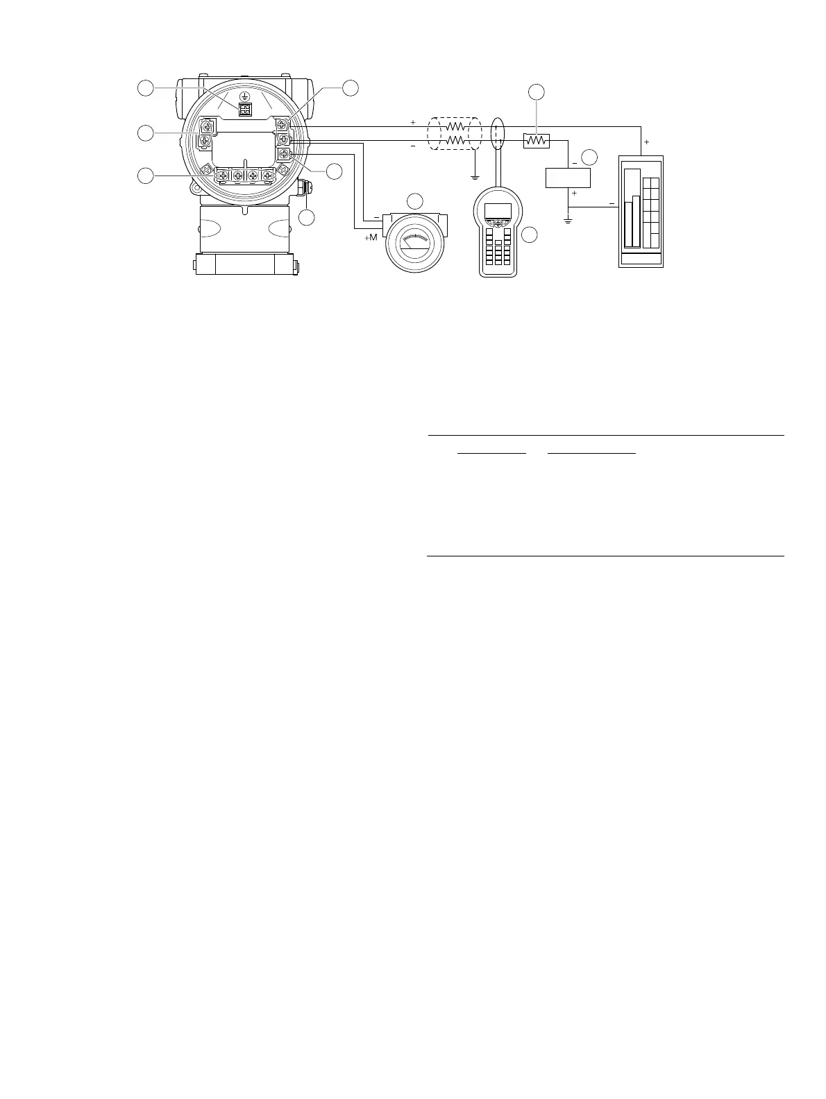 1 Internal earthing terminal 2 Power supply, current / HART output 3 Load resistance 4 Power supply