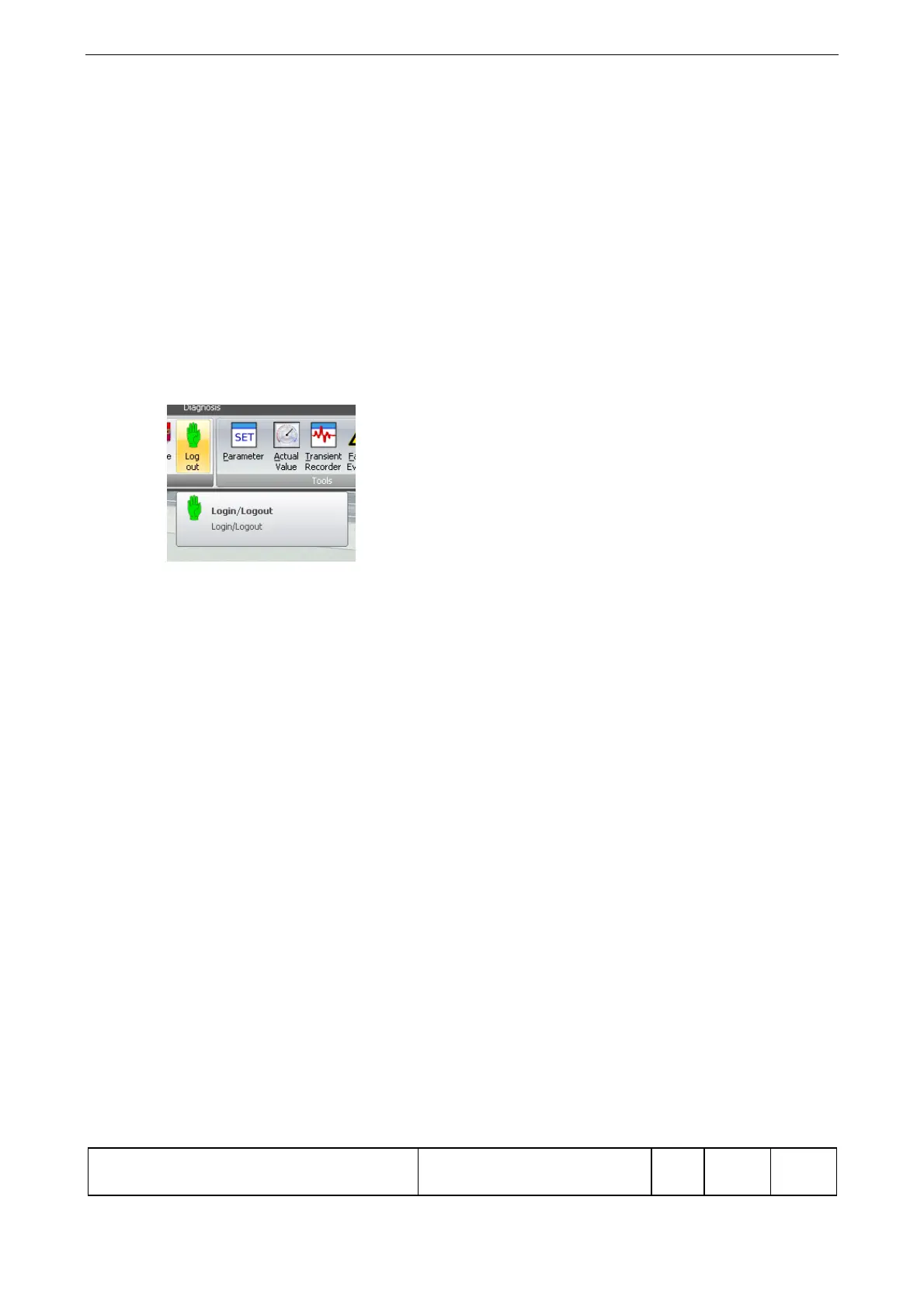 "login" (green hand) takes place by entering the password and enables all functions.
