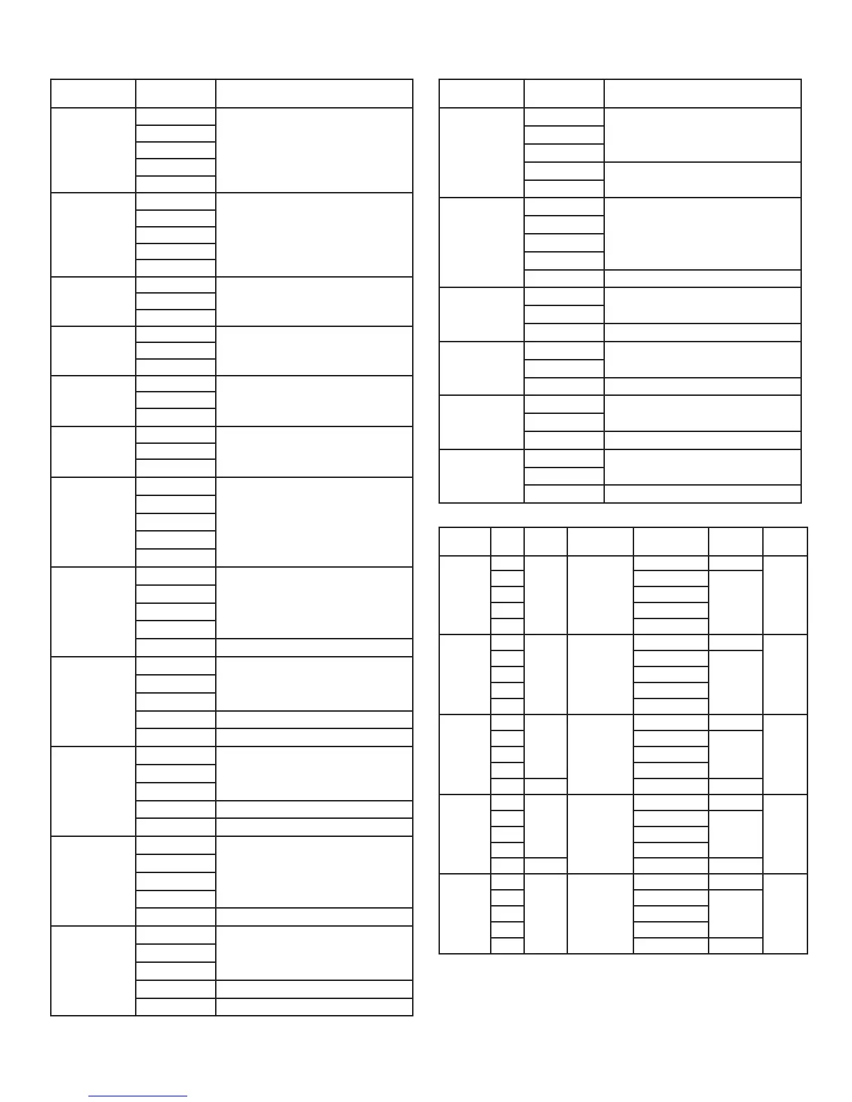 Table 13 – Part Numbers for Replacement Bearings, Single and Double