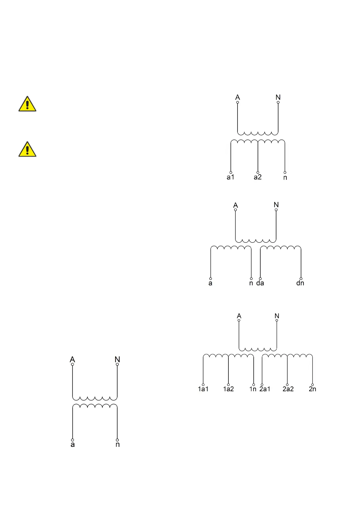 d) Single-pole insulated voltage transformer with two secondary, tapped