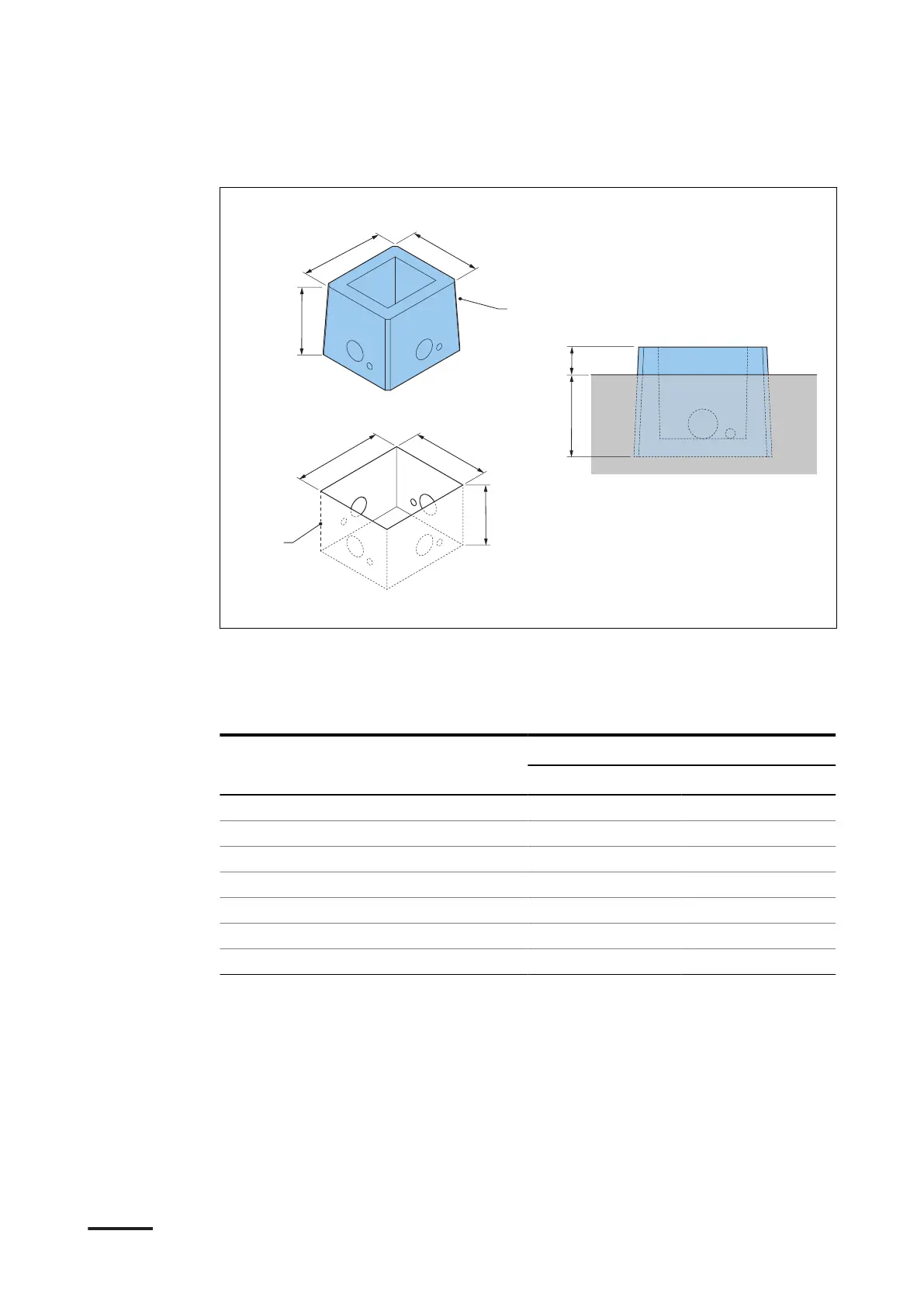 Each side has a square hole XxY = 237 x 165 mm (9.3 x 6.5 in) to fit the conduits 1 x