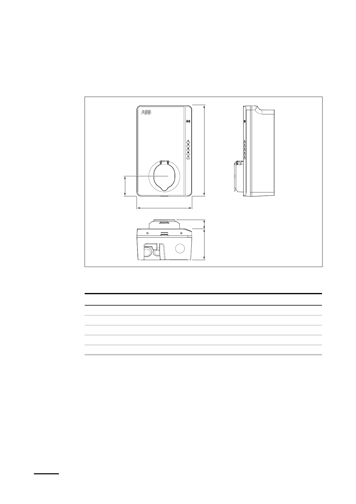 ABB Terra AC - Dimensions; AC input with socket, cable Type 2