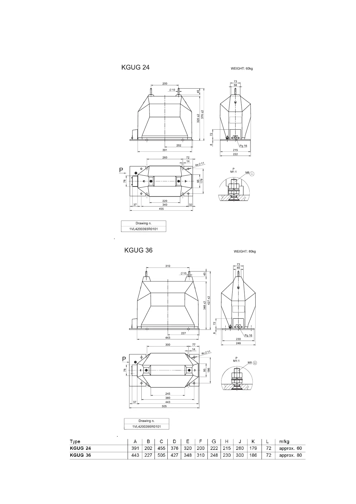 ABB TJC 6 - Dimensional Drawings KGUGI and KGUG