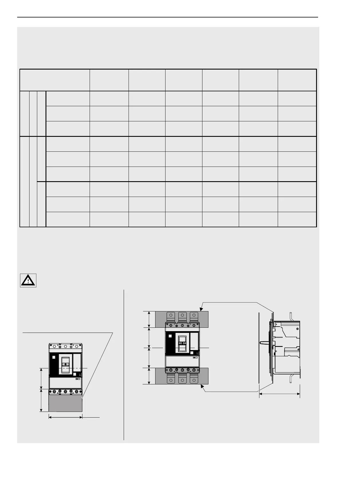 (3) In case of installation with double cable terminal, provide 100 mm additional insulation from breaker bottom edge downward