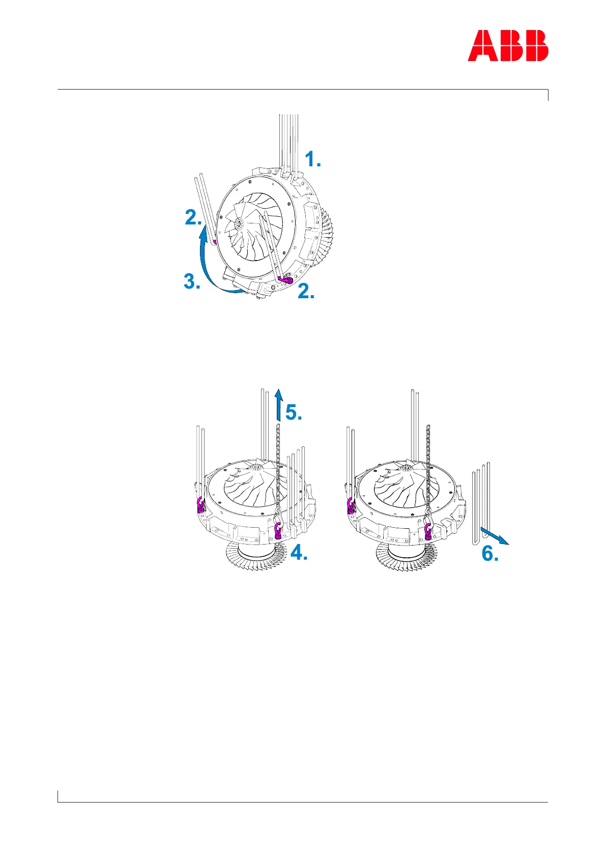 2. Secure two lifting loops with swivel lifting eyes in the lower push-off