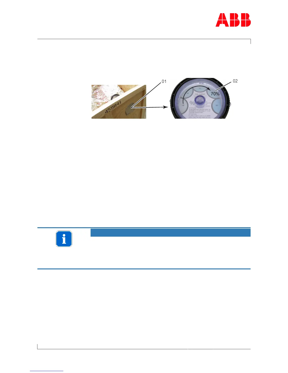 u Check the hygrometer(02) in the sight-glass. There is an opening(01)