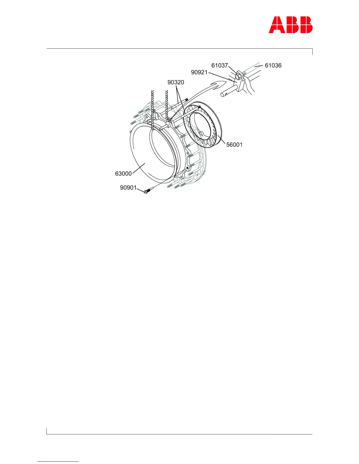 u Loop the lifting gear around the turbine diffuser (63000) and secure it