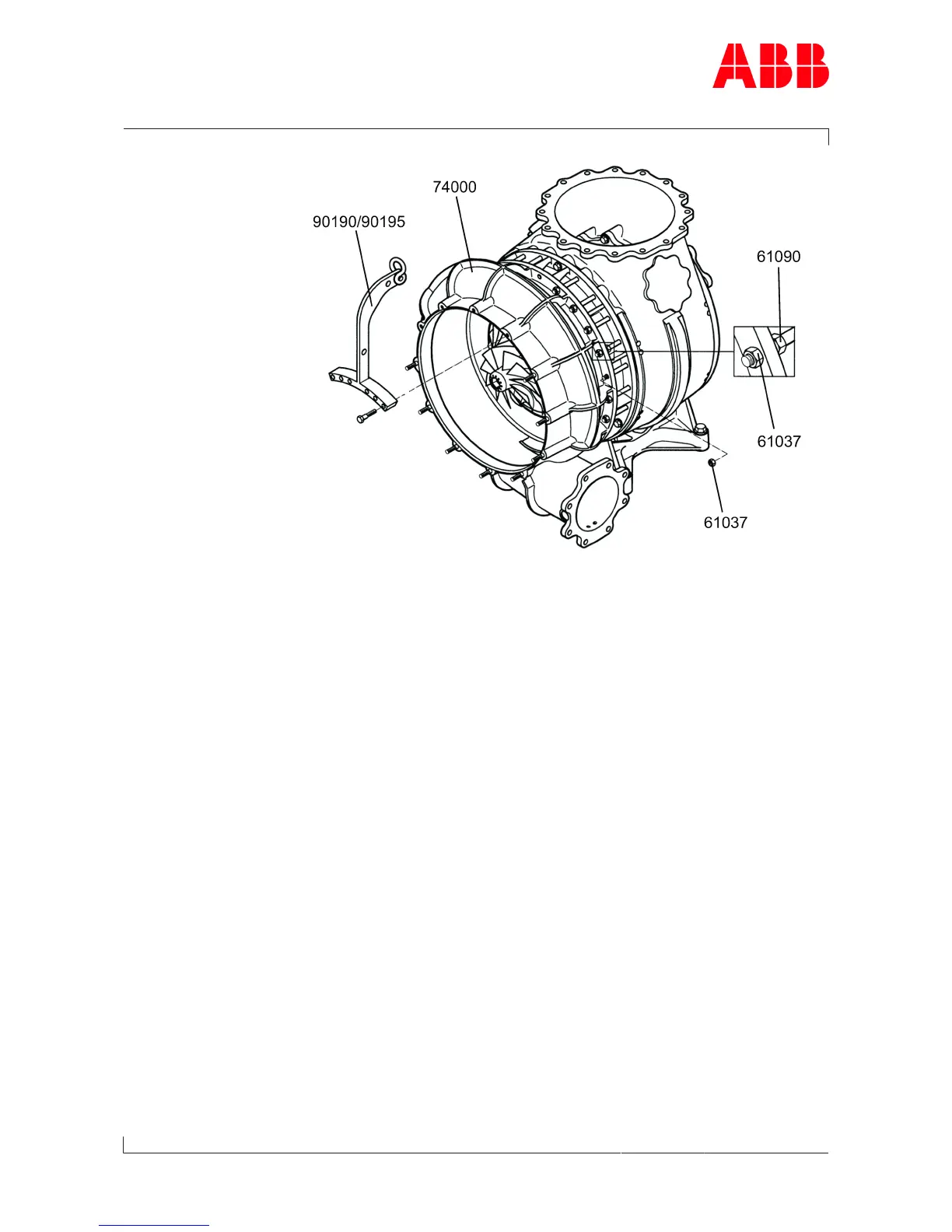 u Fit the compressor casing external part (74000) and secure with nuts