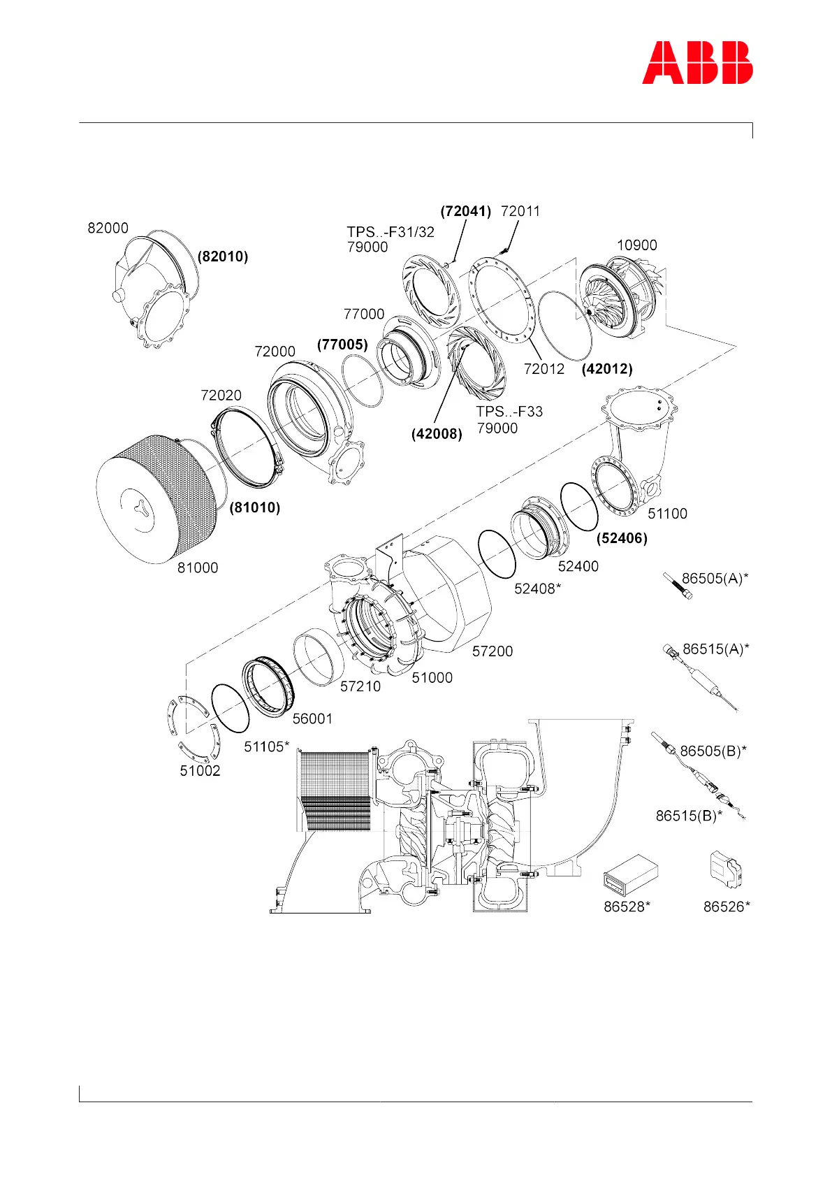 ABB TPS F Series - View of Turbocharger Showing Part Numbers
