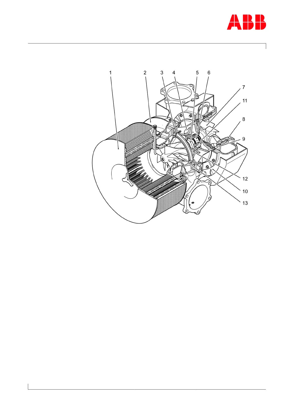 5Axial thrust bearing 12Compressor-end bearing