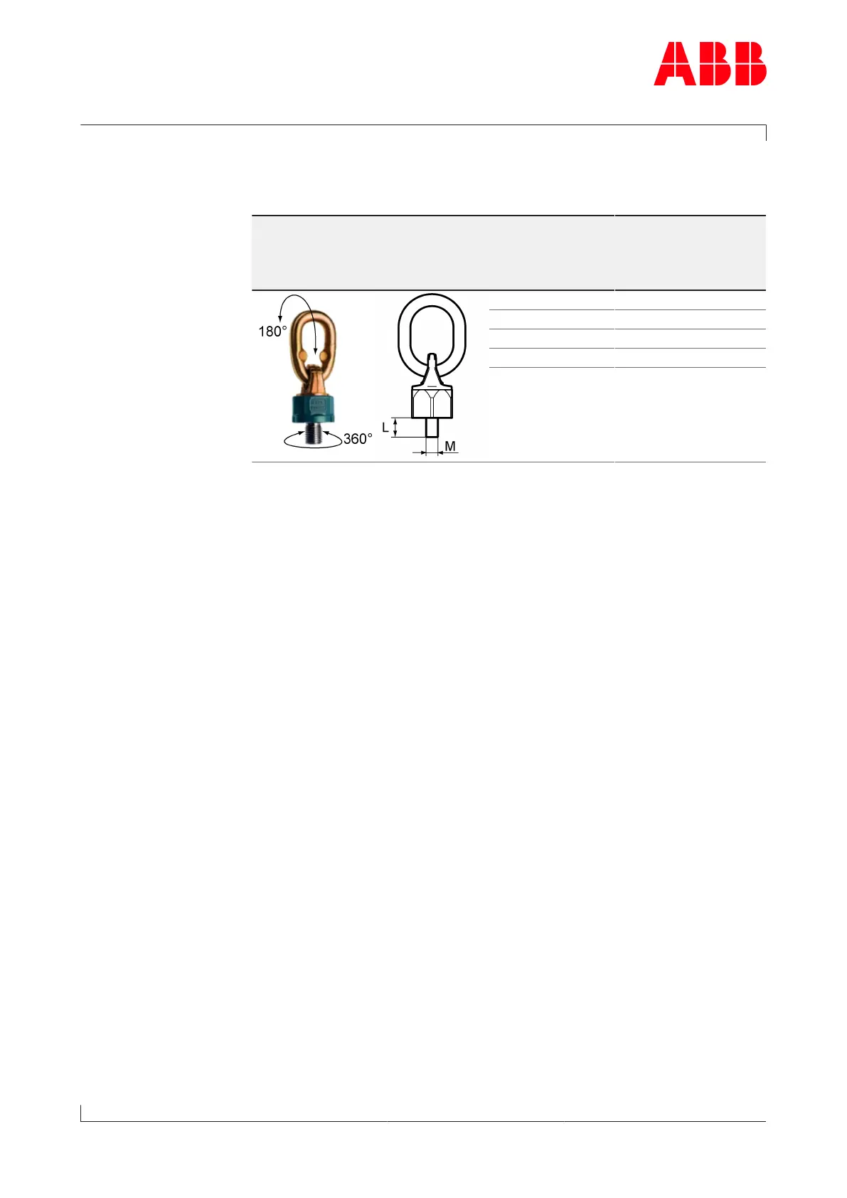A swivel lifting eye is required to lift loads safely (not supplied by ABB).