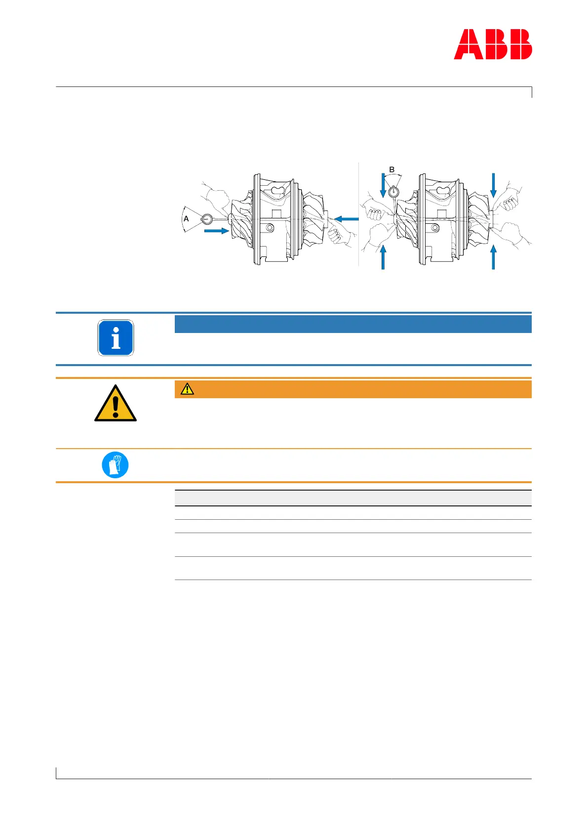In order to correctly measure the axial clearance A, the turbine must be