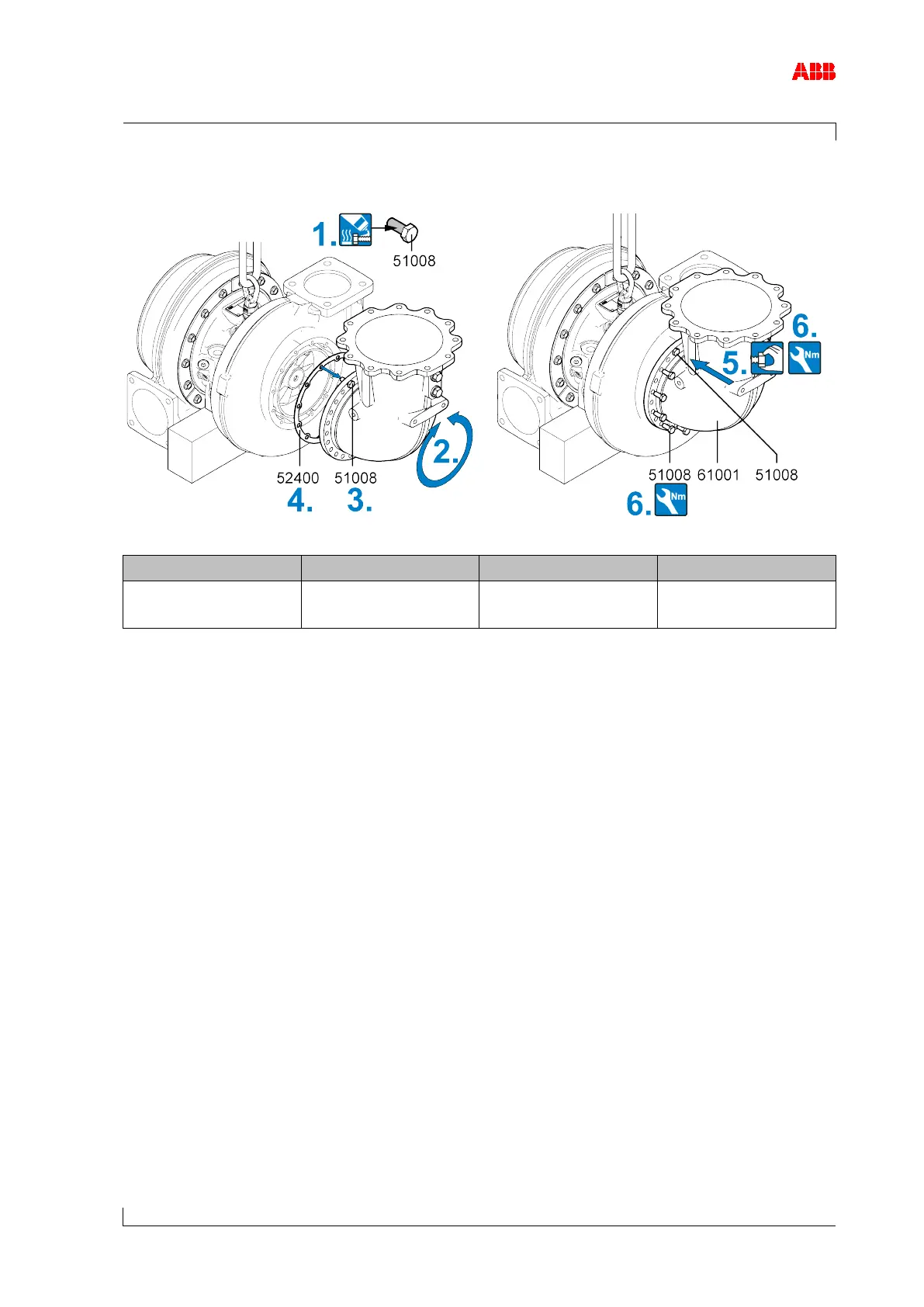 5. Install the gas outlet casing (61001) on the turbine casing with the two screws.