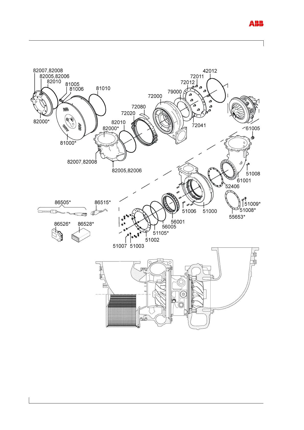 13.3 View of turbocharger with part numbers