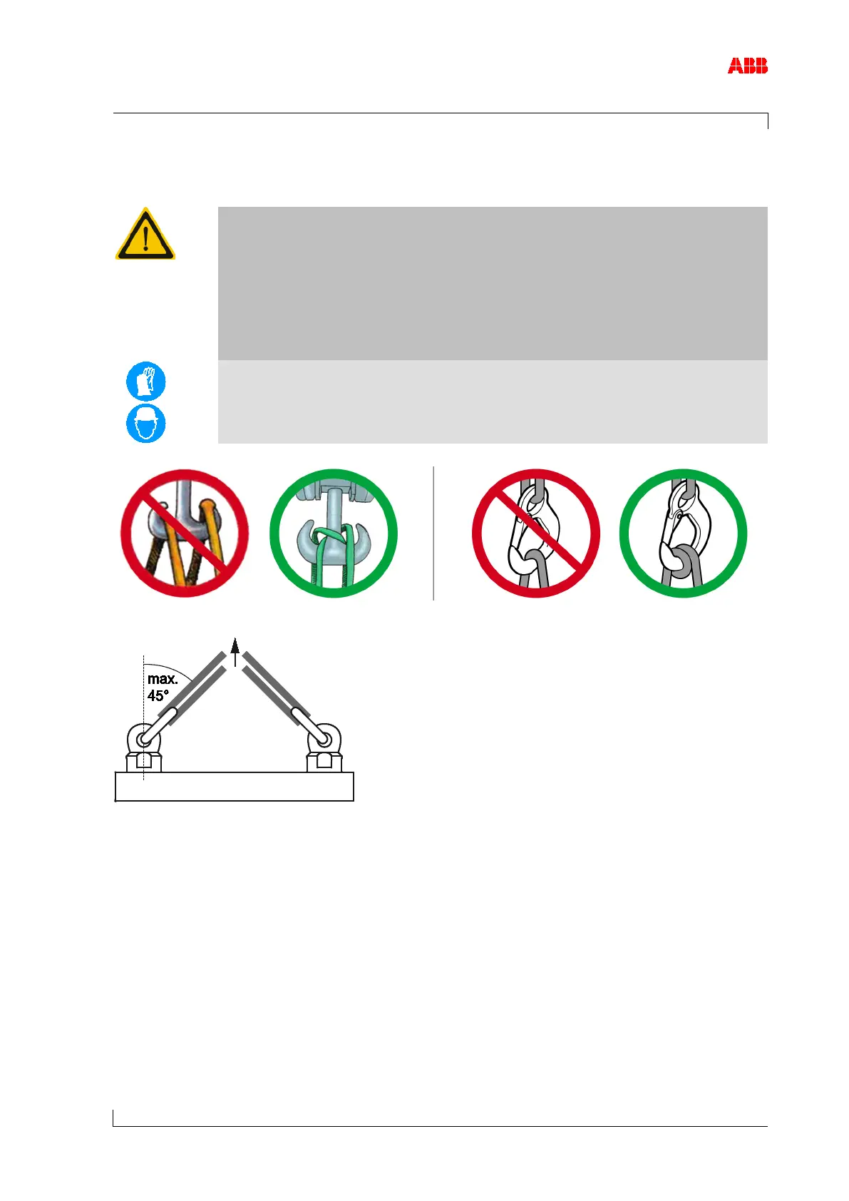 If there are two or more suspension points, the attachment angle of 45° must not be exceed-