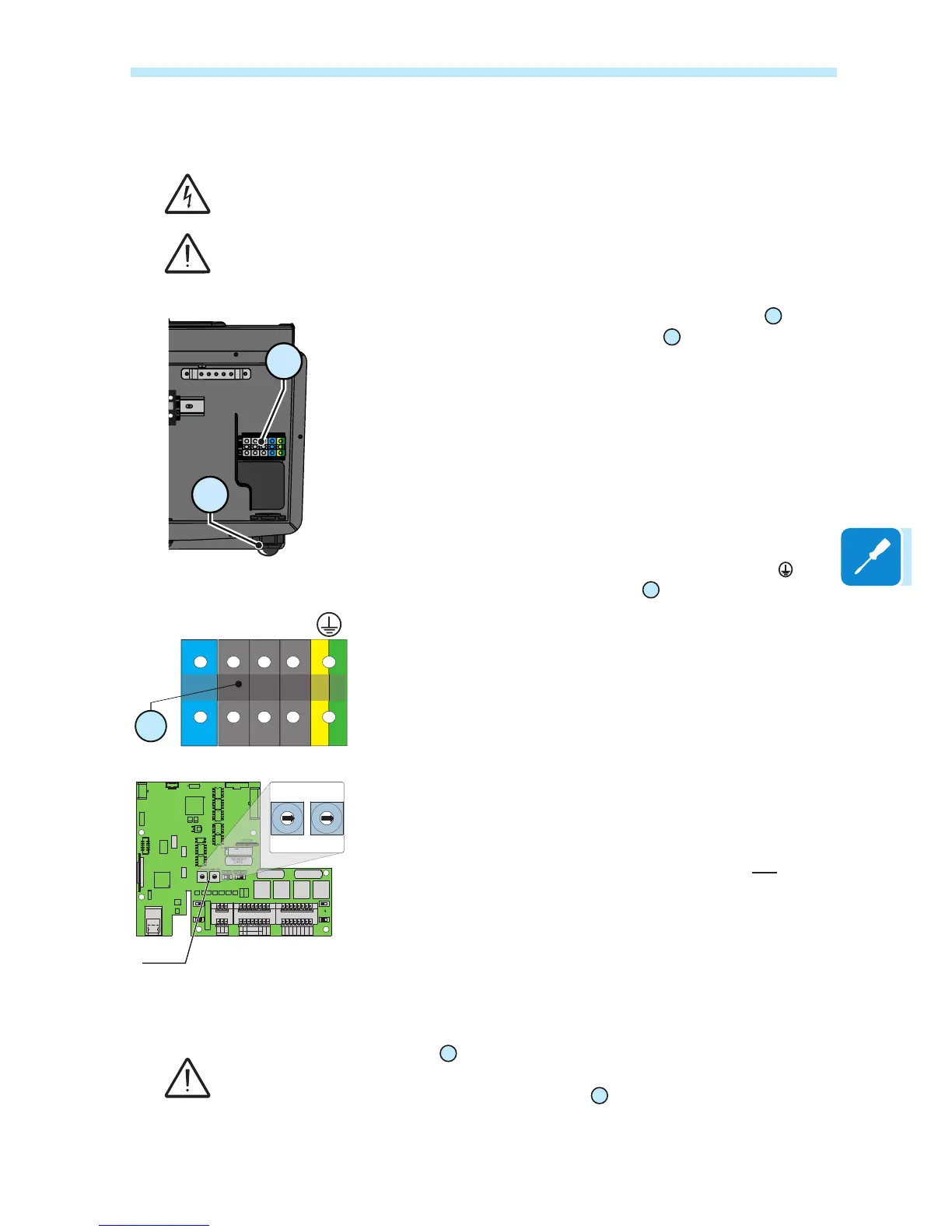 • Connect the conductors Neutral, R, S, T and Protective Earth ( ) to the
