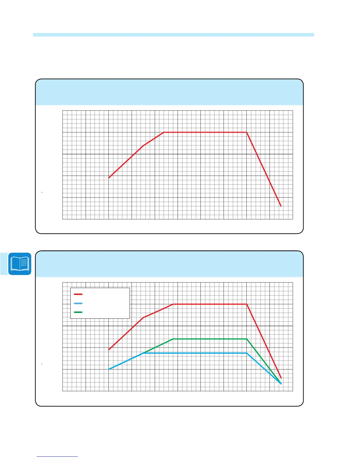 The following graphs show the automatic reduction in output power when the input voltage is too high or too