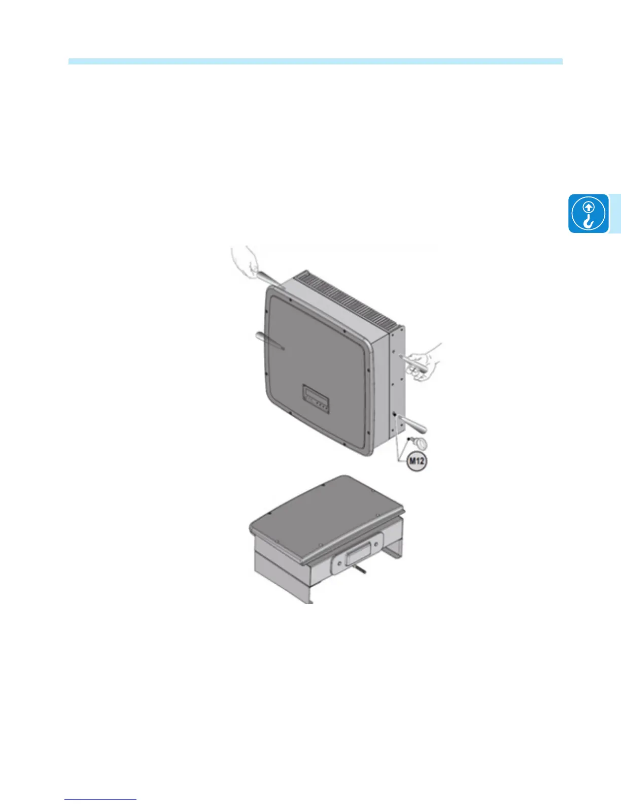 An optional lifting kit, with handles and eyebolts for lifting the inverter, is available and can be