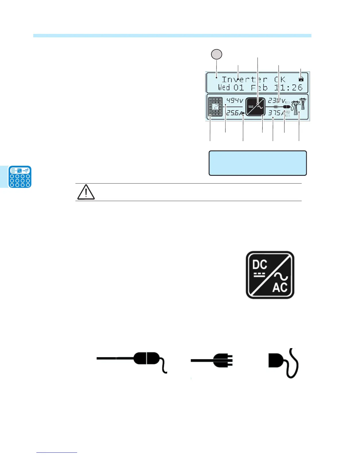 Once the connection sequence is complete, the inverter starts to operate and indicates correct