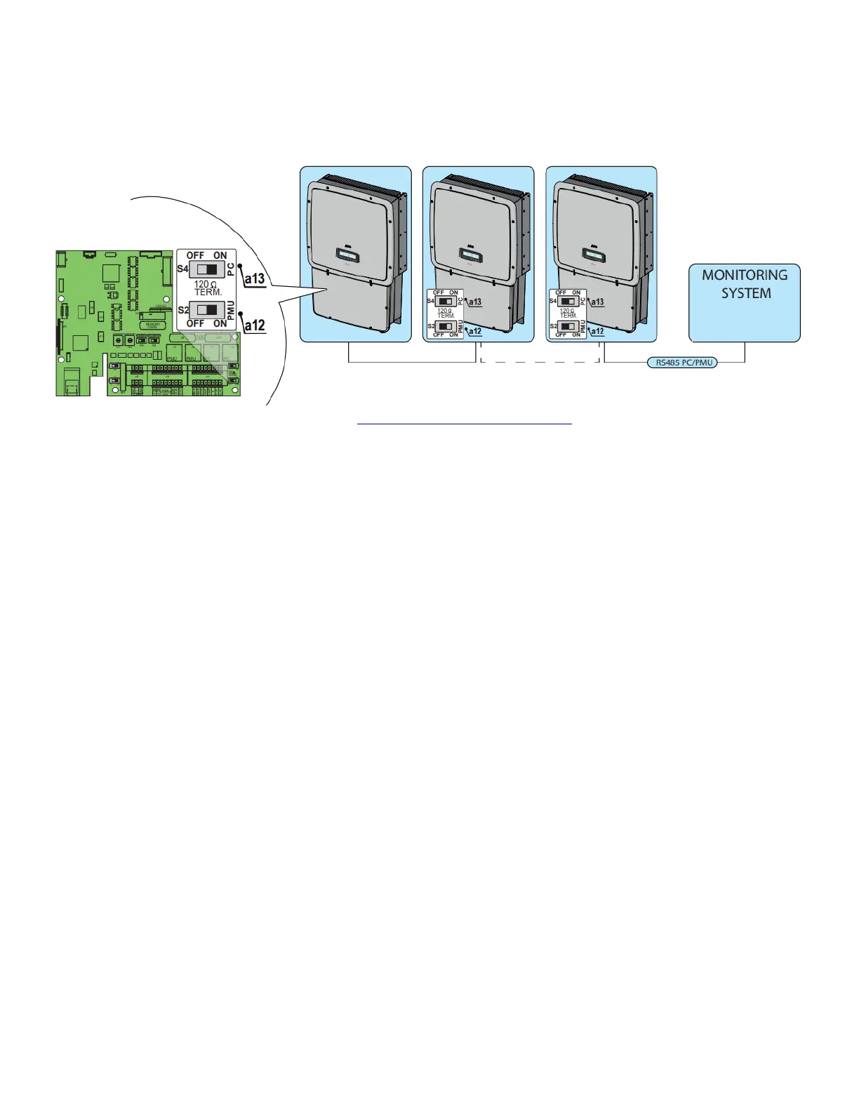 switch a12 or a13 (to ON position) being careful to switch the switch of the serial line used (PC or PMU).