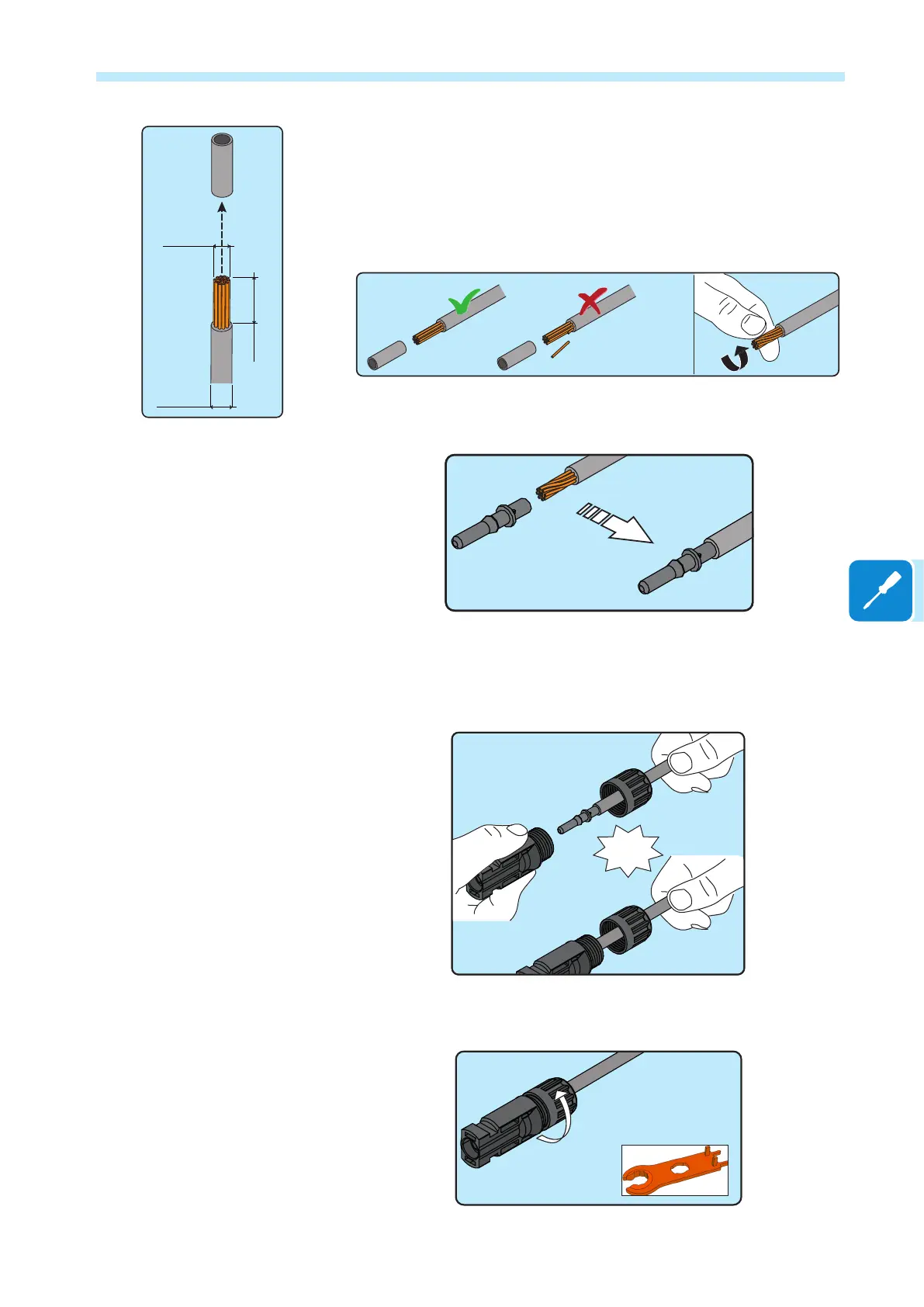 - Strip the cable to which you want to apply the connector (after verifying