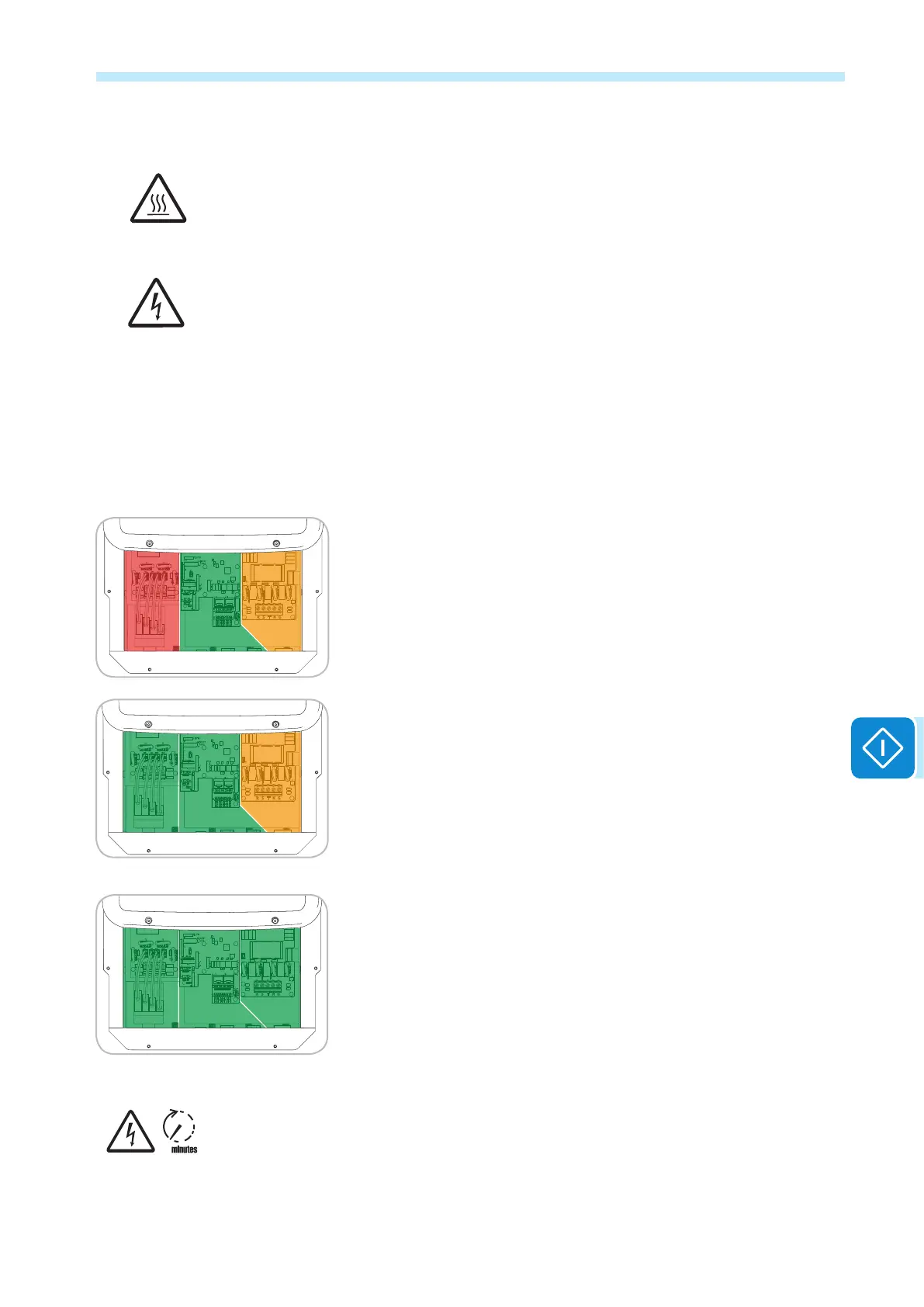 Some inverter parts may be subject to voltages that could be hazardous for the operator.