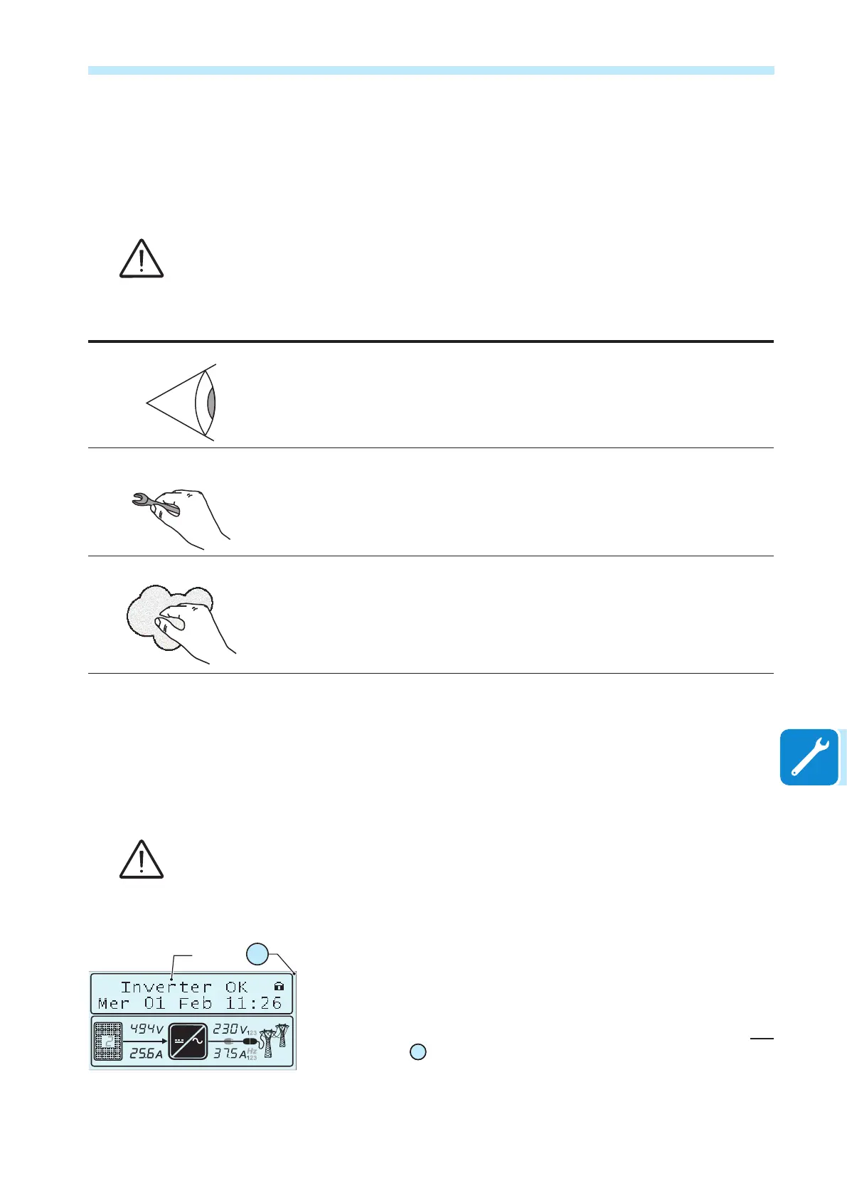 • Check that the inverter is operating correctly, and that no fault alarms are present