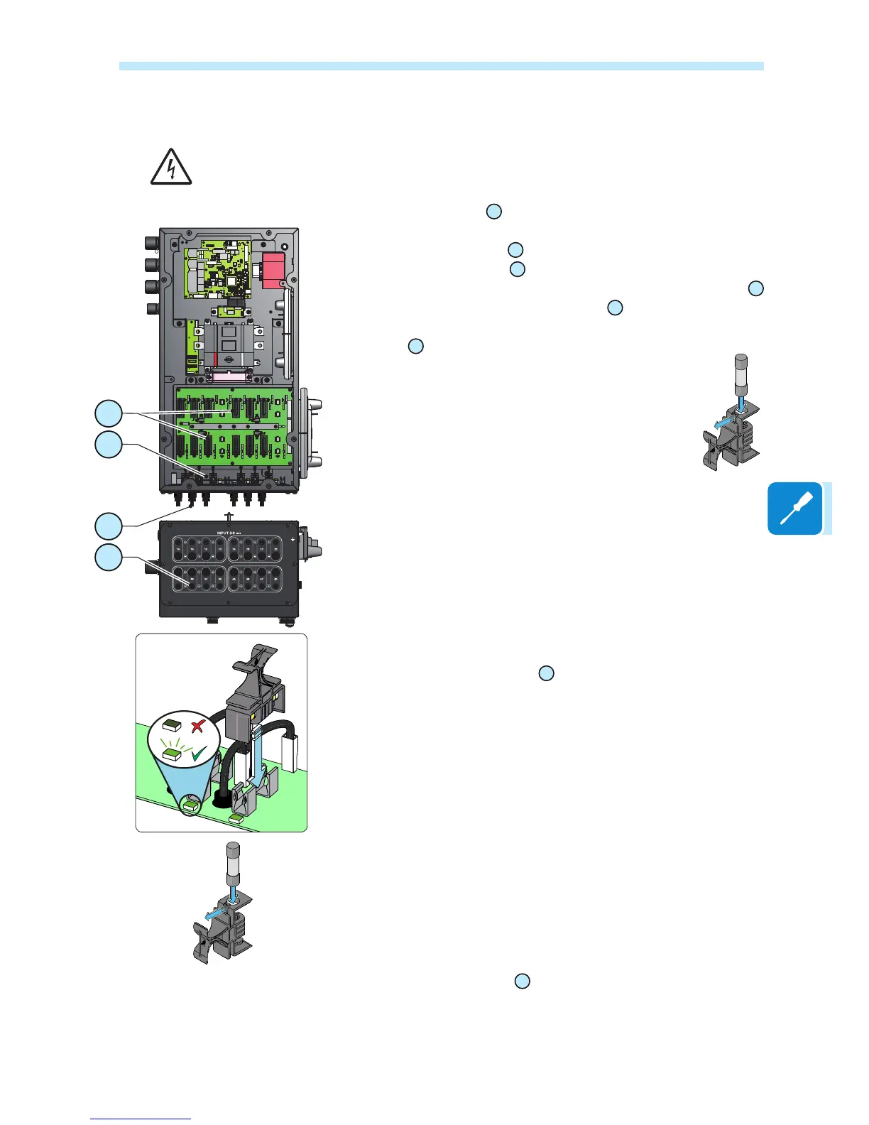 to be tted on the negative pole (-) are supplied; each fuse or string is