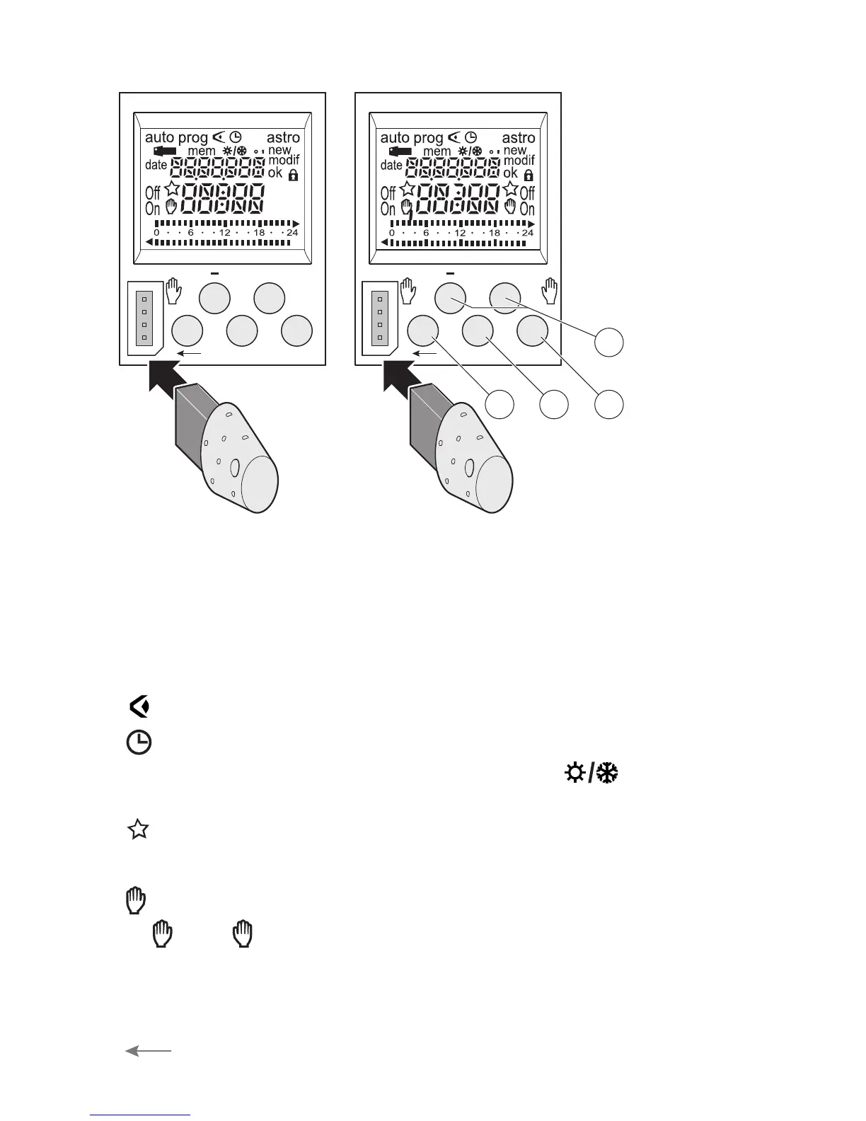 : alteração da hora, da data, e selecção do modo para