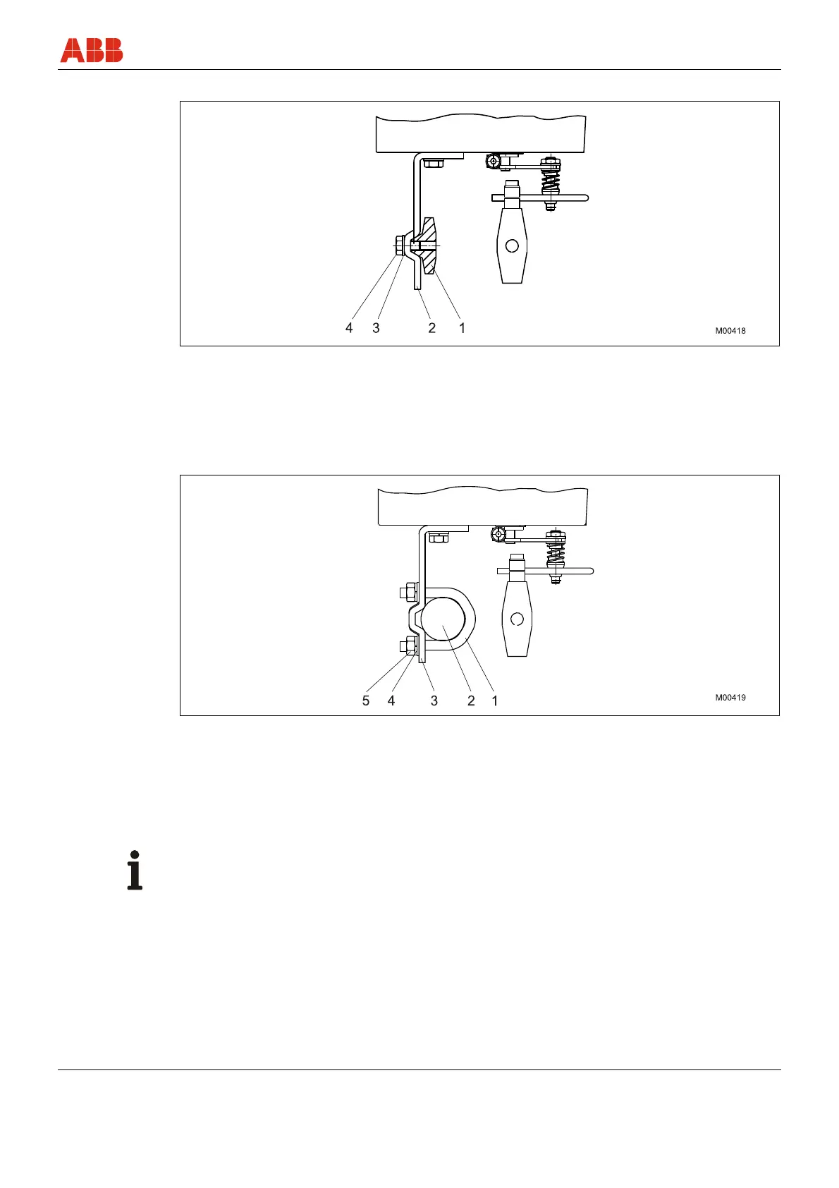 • Add the washers (4) and nuts (5). Hand tighten the nuts