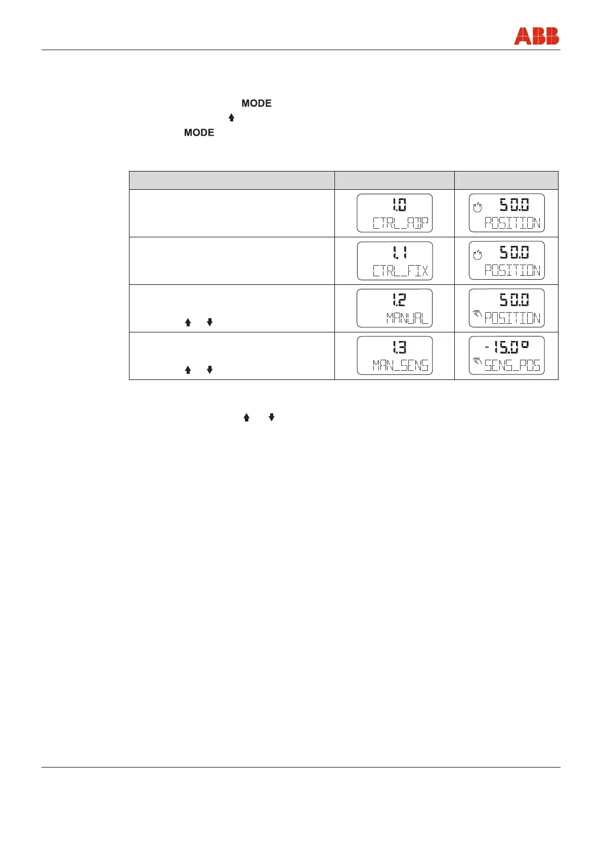 Operating mode Mode indicator Position indicator