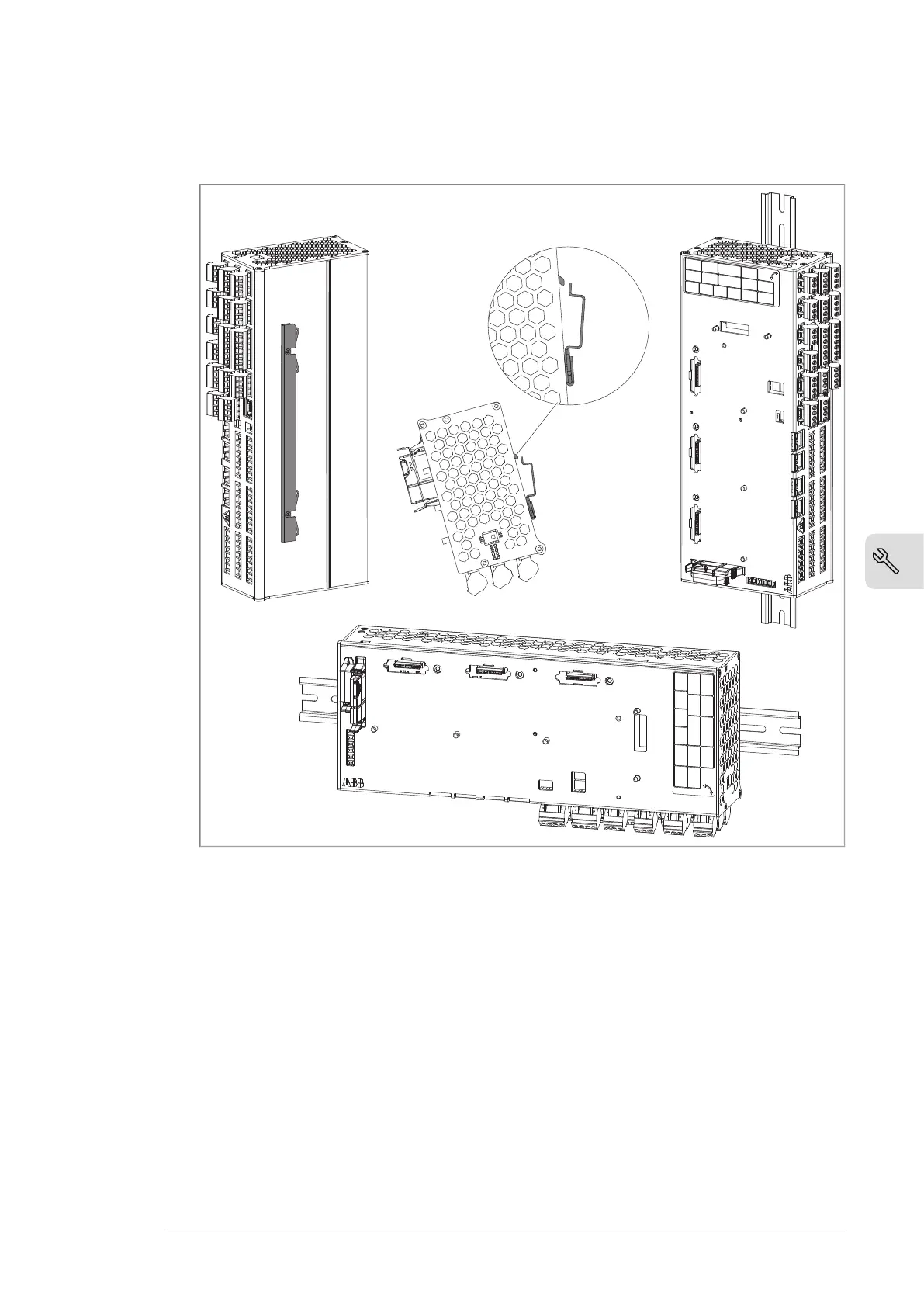 the control unit, attach it to the DIN rail with end brackets (optional).