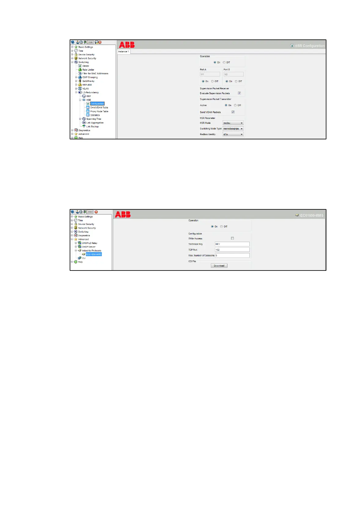 ABB UniGear Digital - Figure 116: HSR Configuration Dialog; Figure 117: IEC61850-MMS Configuration Dialog