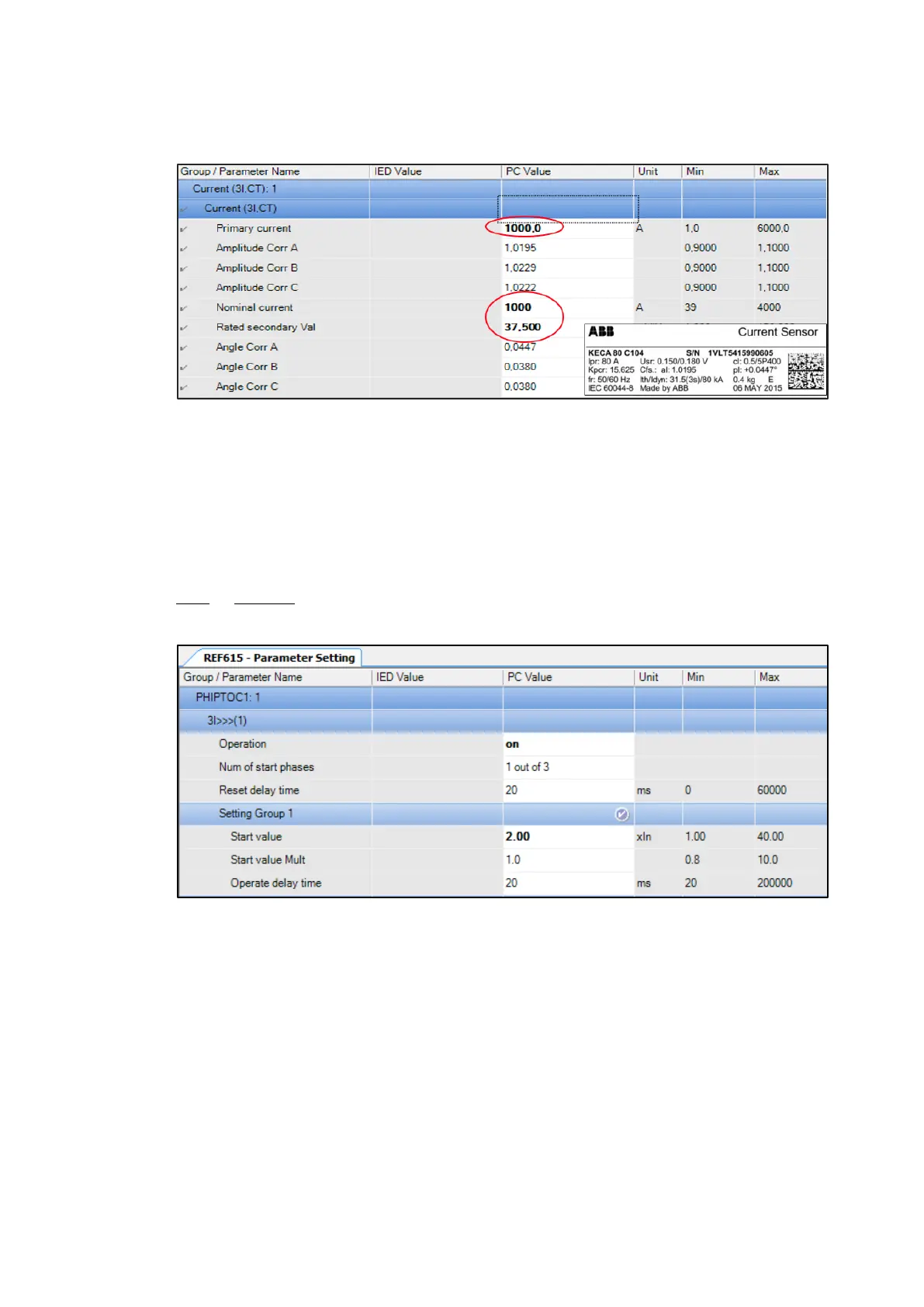 Figure 32: Example of setting values for current sensor in PCM600